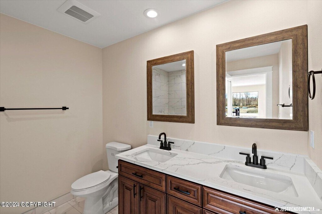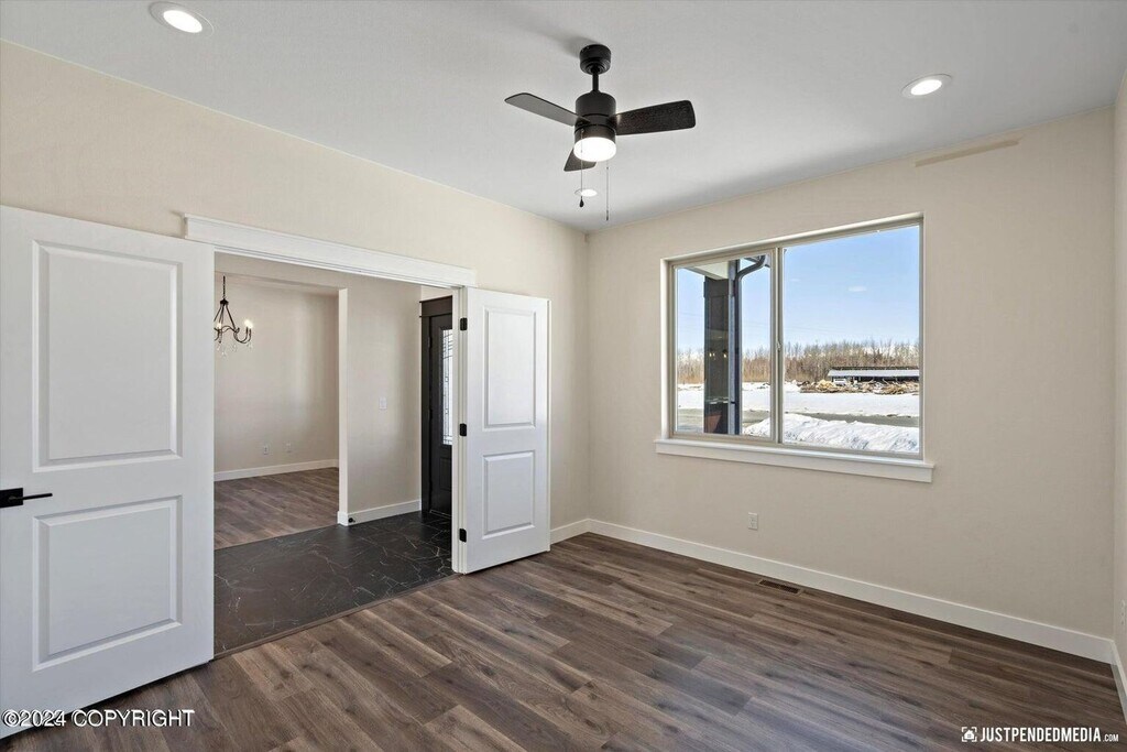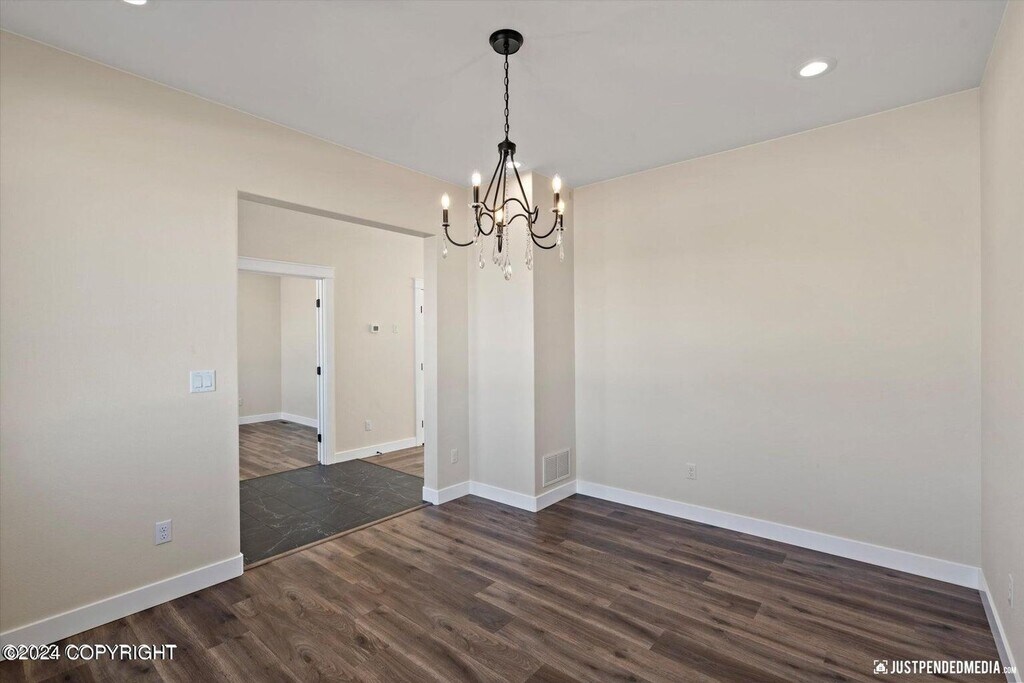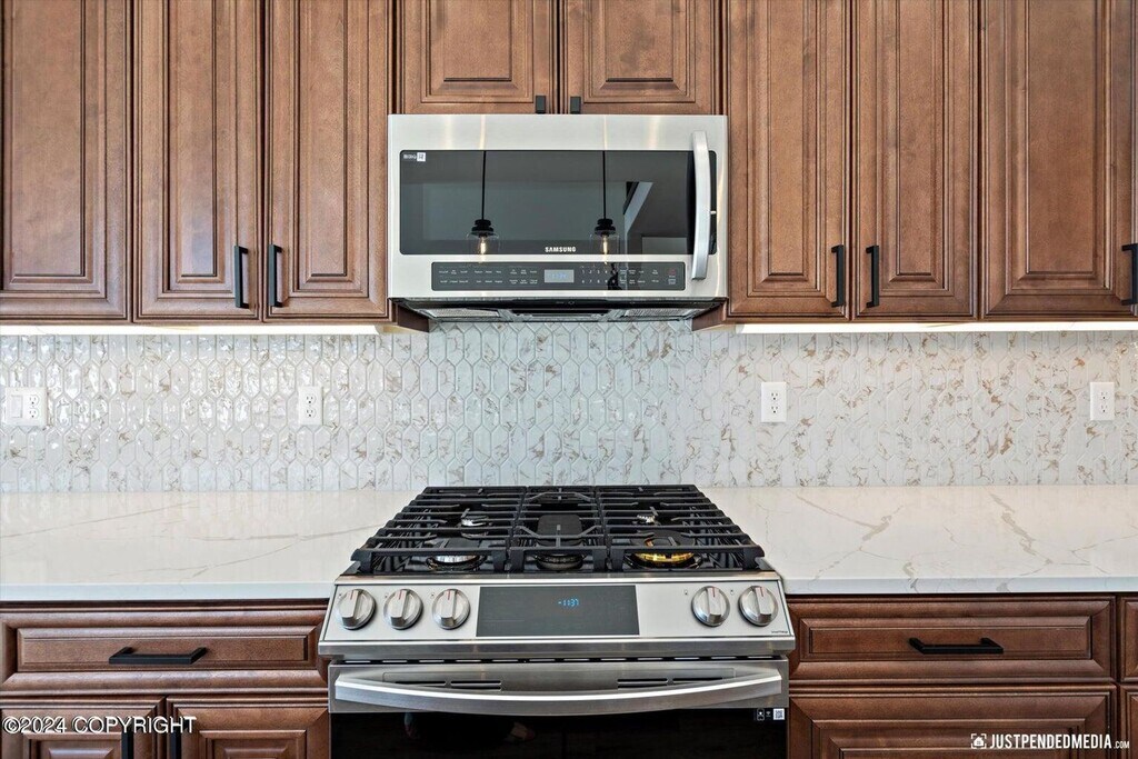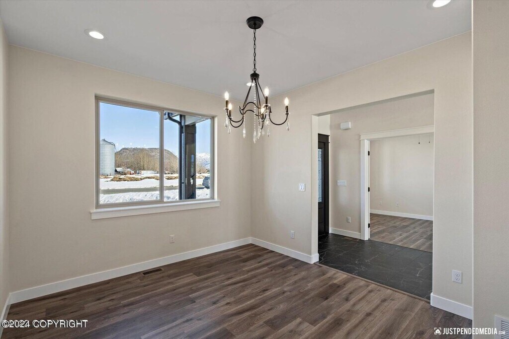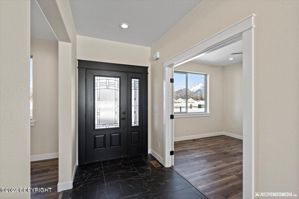 Stunning, brand new construction property with unparalleled views and every amenity you could wish for. The first floor offers ranch style living with the primary bedroom with en suite, kitchen and living room all on the ground floor along with easy access to laundry (hook-ups provided) and the massive 3 car garage! The living room features tall windows to appreciate the mountain views. Upstairs you will appreciate 3 large bedrooms with easy access to another full bathroom. All rooms are spacious with plenty of closet space and featuring ceiling fans in each. The kitchen is fully appointed with stainless steel appliances, contemporary counter tops and under cabinet lighting. This property is just moments away from dining, shopping with easy access to JBER and more!
