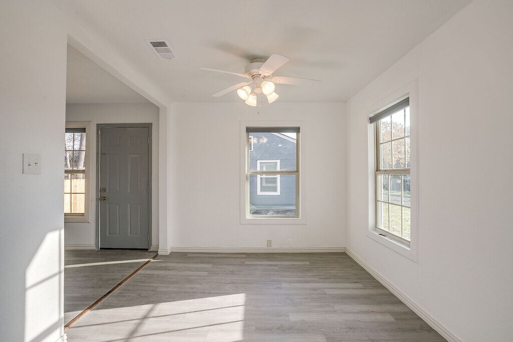 Welcome Home. This is a great 2-bedroom, 1-bath home that has been wonderfully updated. The front porch welcomes you home—luxury Vinyl plank throughout the house and classic black and white tile in the bathroom. The home has a large living area with a ceiling fan, spacious bedrooms, and a kitchen area with storage and all appliances. Energy-efficient windows help with utilities. A stackable washer and dryer area is located in the kitchen for ease. Brand-new bathroom with a fantastic, spacious shower, and storage. Large backyard for those family gatherings. Castleberry ISD. Located near the River District. Easy access to shopping, dining, entertainment, schools, etc. Come and make this one your own.
