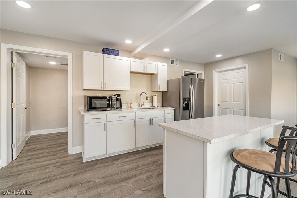 This charming Gulf Access,1st floor end unit is ready to move in. Marlou Villas Condos is centrally located and just 2 blocks away from downtown Cape Coral. With convenient access to restaurants,pharmacies,grocery stores,local shops,the new SAILAWAY Food Truck Park & Marina,and more. This spacious 2-bedroom,2-bathroom condo features a large kitchen,and screened-in lanai that overlooks the serene canal. Perfect for enjoying your morning coffee or evening sunsets. It has been updated with impact resistant sliding doors and windows,freshly painted,new stove,dishwasher,microwave,bathroom vanities,and toilets. Tiled and vinyl floors throughout,keyless front lock,composite boat docks,and boat slips are 1st come,1st serve. Water and 1 assigned parking space are included. Guest parking spaces available. The community has a heated pool,laundry and dryer,shuffleboard,pool table,kitchenette area with an island,dining table and bathroom.