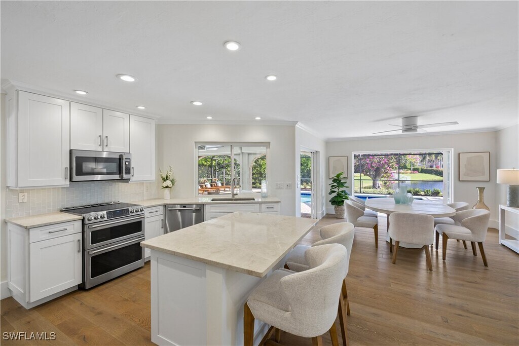 New listing,available immediately! Coastal Charm Meets Park Shore Luxury! Discover the ultimate Naples lifestyle in this lakefront gem located in the prestigious Park Shore community,just a short walk to the beach,Venetian Village,and Waterside Shops offering world-class shopping and dining.This beautifully maintained home features a remodeled kitchen and guest bath,new appliances,spacious living and family rooms,hardwood flooring,and impact-resistant windows and sliding doors throughout. The expansive covered lanai with a summer kitchen and screened pool area provides the perfect setting for entertaining,relaxing by the water,swim in the heated pool or enjoying the stunning sunrise and sunset views over the lake. Park Shore Private Beach access,boat,kayak and paddle board rental by Venetian Village will make your stay unforgettable. Your piece of Naples paradise awaits!