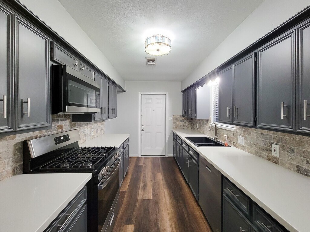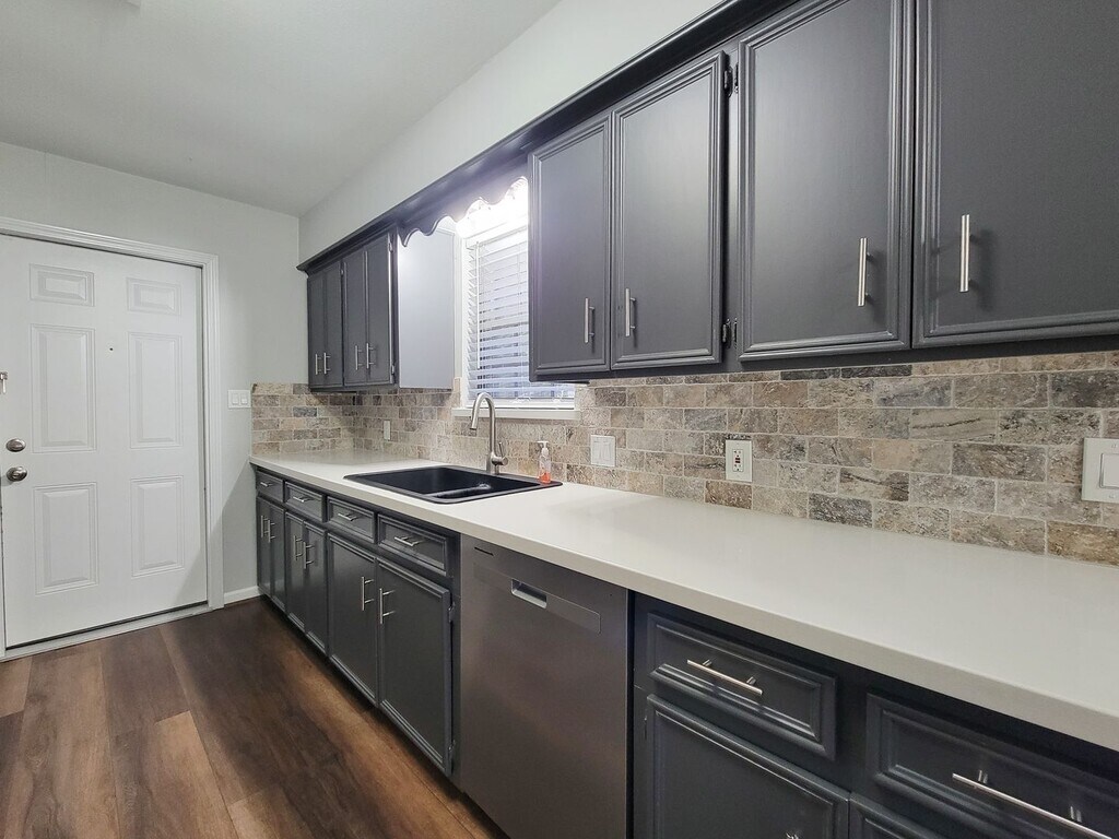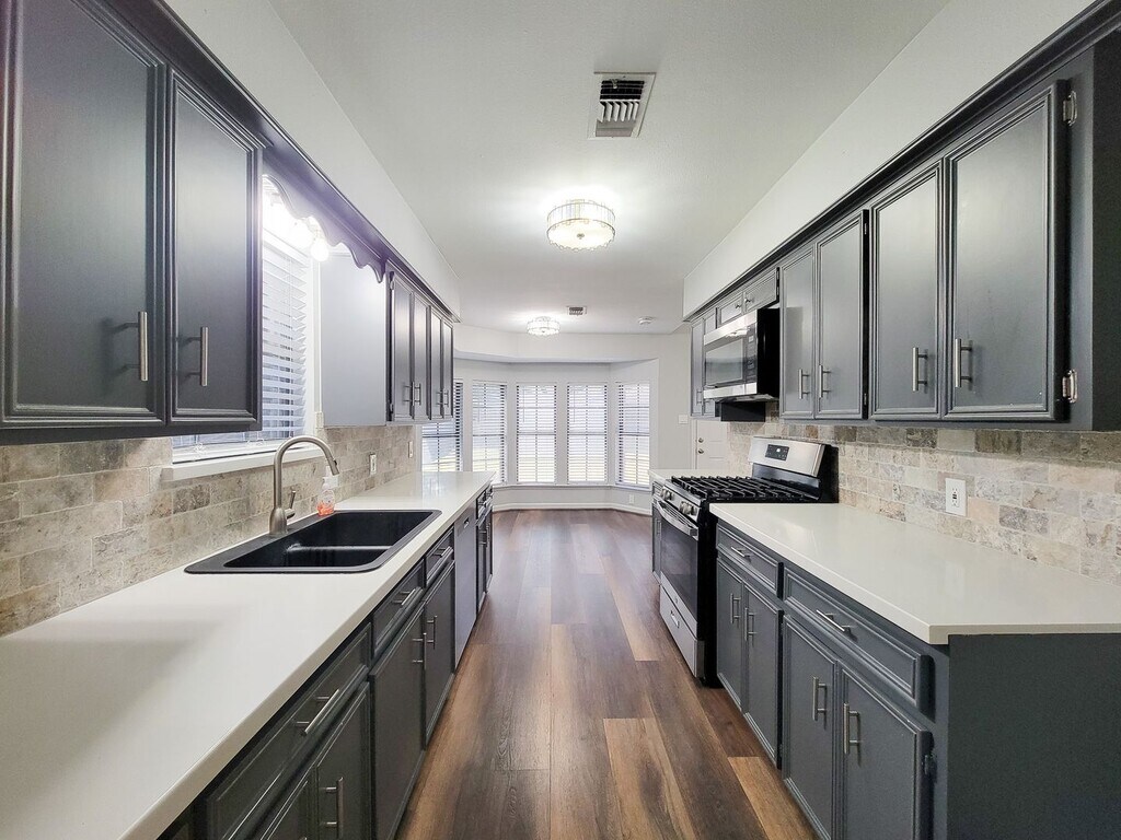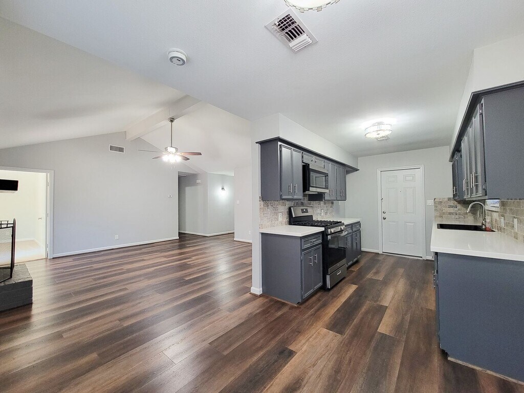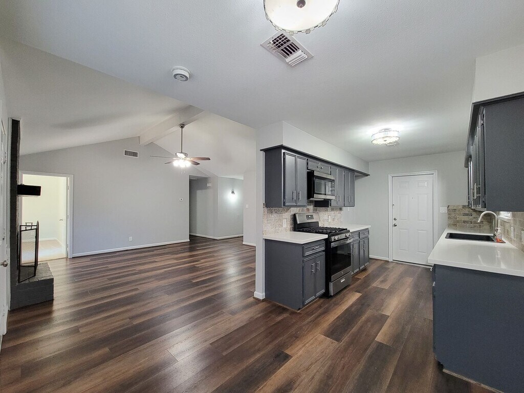 Welcome to your cozy retreat in the heart of Rosenberg! This beautifully maintained 3-bedroom, 2-bathroom home offers a spacious open-concept living area that seamlessly connects to the breakfast room and kitchen, perfect for everyday living and entertaining. With all laminate wood flooring throughout and remodeled home—this home is move-in ready! Conveniently located near major shopping centers and offering a low tax rate, this home provides both comfort and convenience.