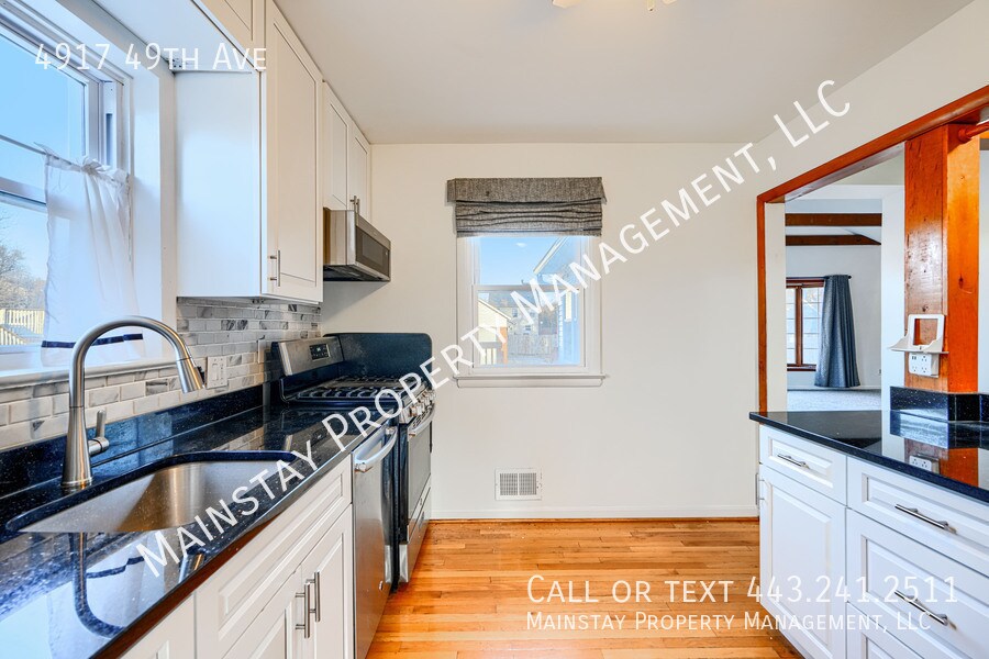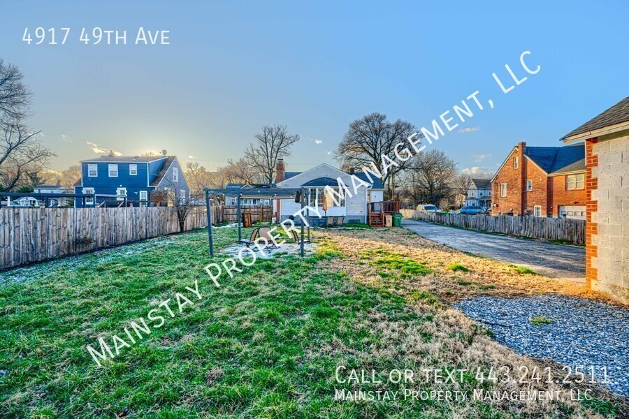 Available immediately! Welcome to 4917 49th Ave, a charming 2-bedroom plus den single-family home situated on a generous quarter-acre lot in Hyattsville. The main level features a bright and inviting layout, including a dining room, bonus room, two comfortable bedrooms, and a fully updated bathroom. The modern kitchen is equipped with stainless steel appliances and granite countertops, flowing seamlessly into a spacious family room filled with natural light from beautiful bay windows. The lower level offers a large rec room with durable LVP flooring, a full bathroom, an additional bonus room, and a sizable utility room complete with a washer and dryer. Outside, you'll find a large backyard perfect for relaxing or entertaining, and a private deck just off the kitchen—ideal for enjoying outdoor dining. The garage is not accessible for tenants. Cats and small to medium sized dogs negotiable with $45 in monthly pet rent. Schedule your showing today!