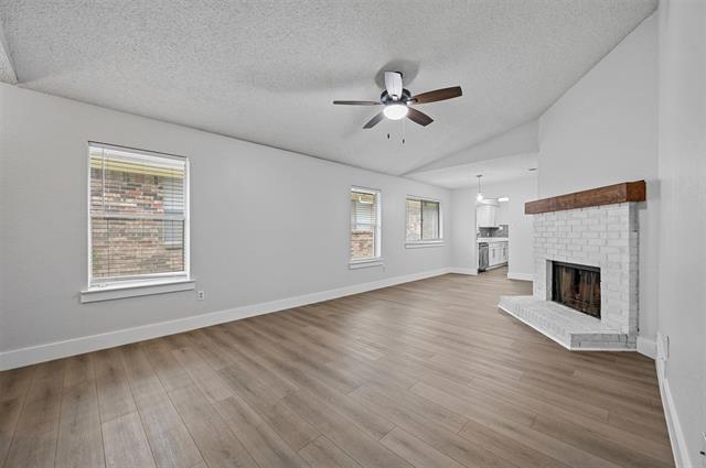 Welcome home to this fully updated 2-bedroom, 2-bath duplex offering modern finishes, a bright open layout, and a private fenced backyard, perfect for comfortable living in a quiet, convenient neighborhood. Step inside and instantly fall in love with the fresh paint, luxury vinyl plank flooring, and stylish black interior doors that add a touch of sophistication throughout the home. The spacious living area features vaulted ceilings, a ceiling fan, and a white brick fireplace that creates the perfect cozy setting for relaxing or entertaining guests. Both bedrooms offer generous space, updated lighting, and large windows that bring in great natural light. The bathrooms are refreshed with modern vanities, upgraded lighting, and clean, contemporary finishes. Enjoy a private fenced backyard, ideal for quiet mornings, pets, or weekend grilling.