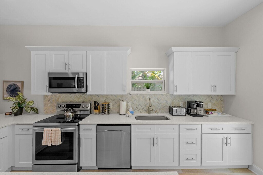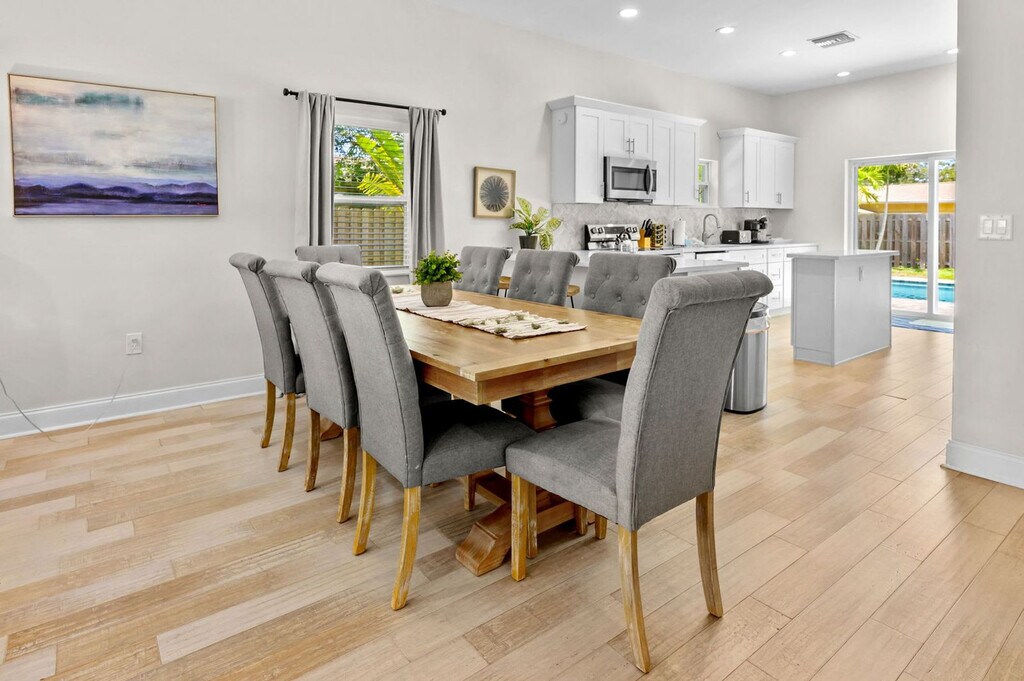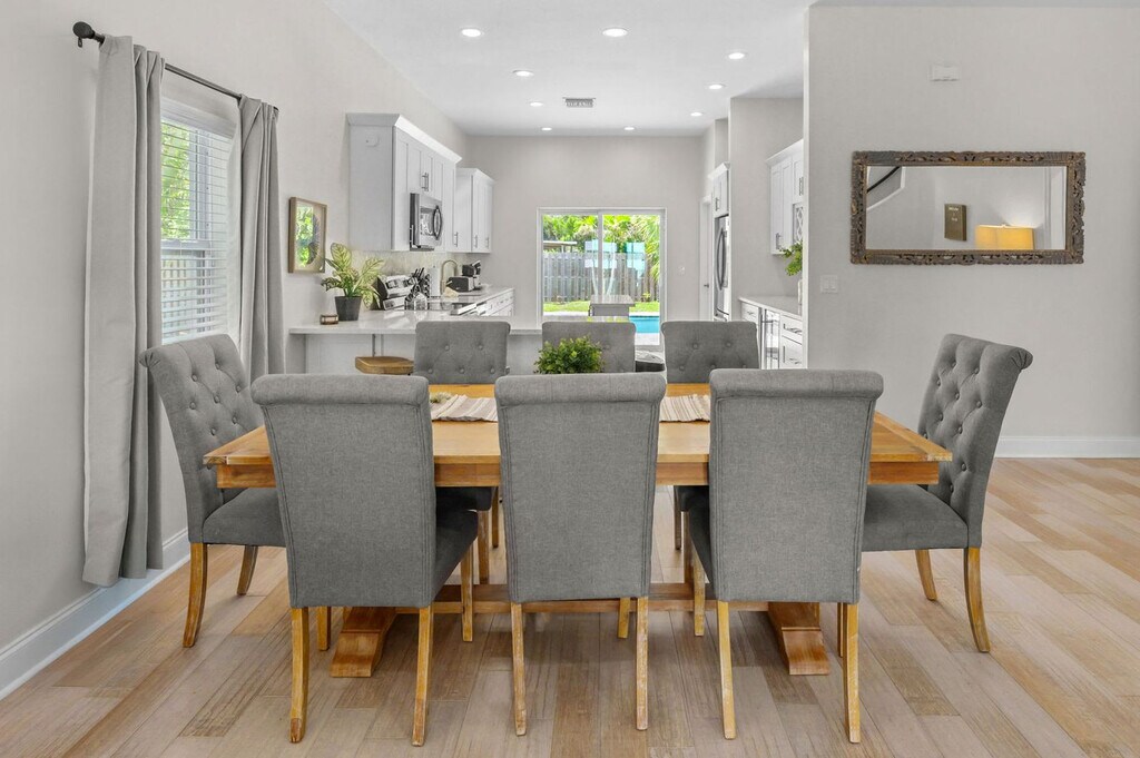This 3-bedroom home in Sarasota, FL, offers everything you need for an amazing vacation. With a private pool, outdoor patio, and balcony, this home provides ample space for relaxation and enjoyment. The home is family-friendly, featuring plush beds, a high chair, and a Pack ’n Play, and is dog-friendly as well. Ample parking is available for up to 8 cars in the driveway. Welcome to your Sarasota getaway! This beautifully appointed home offers the perfect blend of comfort, style, and convenience for families and groups alike. With 3 spacious bedrooms, 2.5 bathrooms, and room to accommodate up to 6 guests, you’ll have plenty of space to relax, unwind, and make unforgettable memories. Step inside to enjoy bright, airy living spaces, a fully equipped kitchen, and cozy gathering areas perfect for movie nights or game time. Outside, soak up Florida’s sunshine while enjoying the backyard retreat, or take a short drive to explore Sarasota’s world-famous beaches, cultural attractions, and dining scene. Up to 2 dogs are allowed for $125 per stay, but no cats please. Parking is available in the driveway for up to 8 cars, with no street parking allowed. Nearby attractions include Siesta Key Beach, famous for its soft white quartz sand and turquoise waters, and Marie Selby Botanical Gardens, filled with orchids and tropical plants. The Ringling Museum of Art and Circus Museum offers world-class art and circus history, while Sarasota Jungle Gardens provides family-friendly gardens with flamingos and animal shows. Dining options nearby include Marina Jack Patio Bar and Grill, Owen’s Fish Camp, and Boca Kitchen Bar and Market, all within a short drive. Check-in is at 4pm and check-out is at 10am. No parties are allowed, and violations may result in immediate termination of the stay. An exterior camera is installed solely to monitor our cleaning team for quality and security purposes. Guests must be 21 years or older to book this property. If you're interested in a long-term stay, please reach out to inquire about availability. A guest verification process is required within 48 hours of booking confirmation, including signing a rental agreement and providing a valid ID and matching credit card. A non-refundable $60 damage waiver is required, covering accidental damage during your stay, as long as it is reported prior to check-out. High-speed Wi-Fi is available throughout the home, ensuring you can stay connected during your stay.