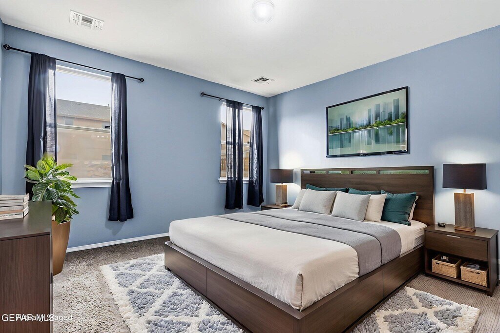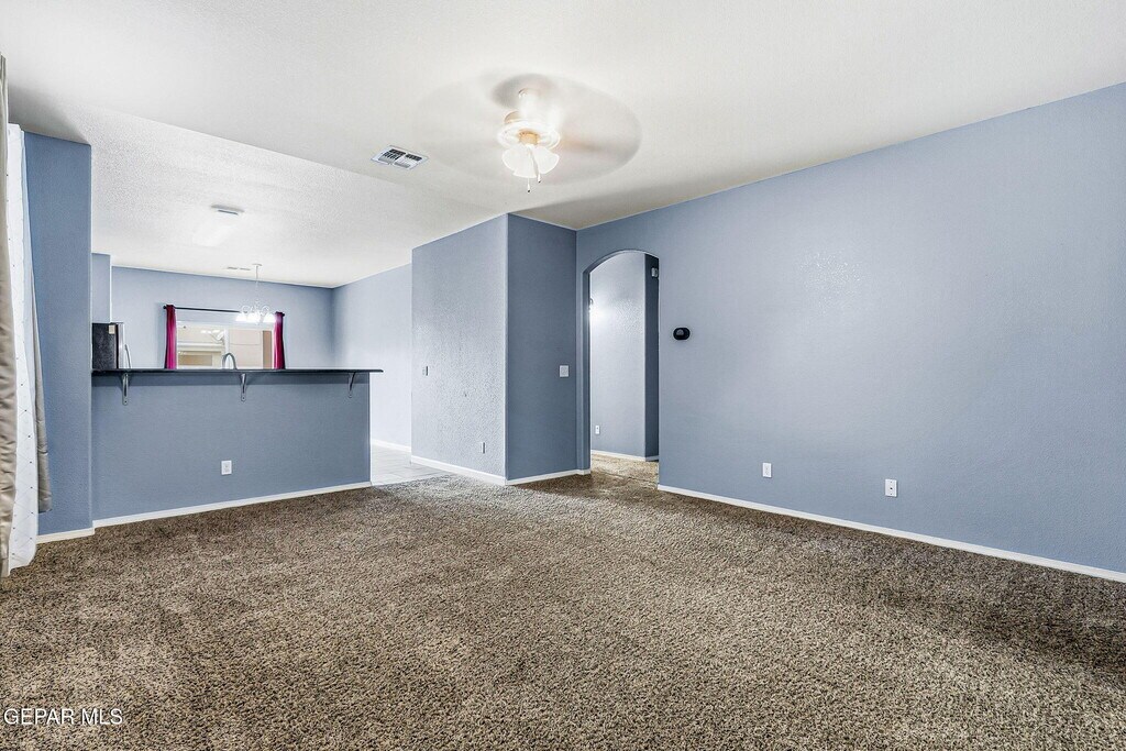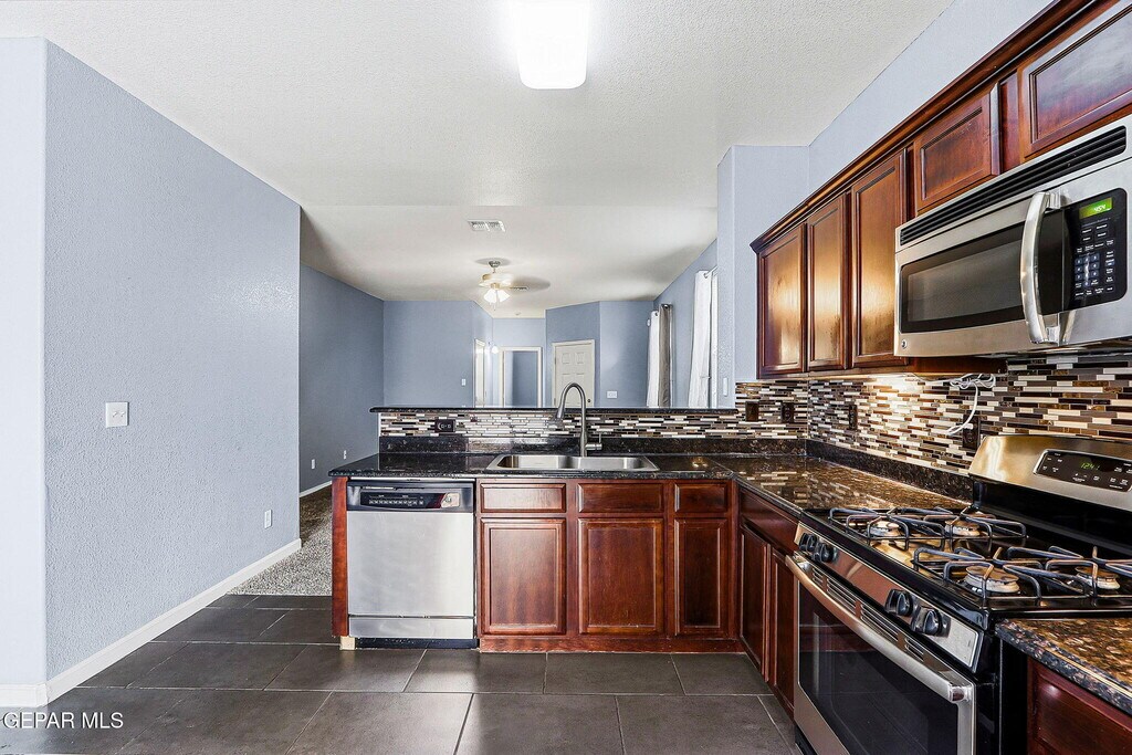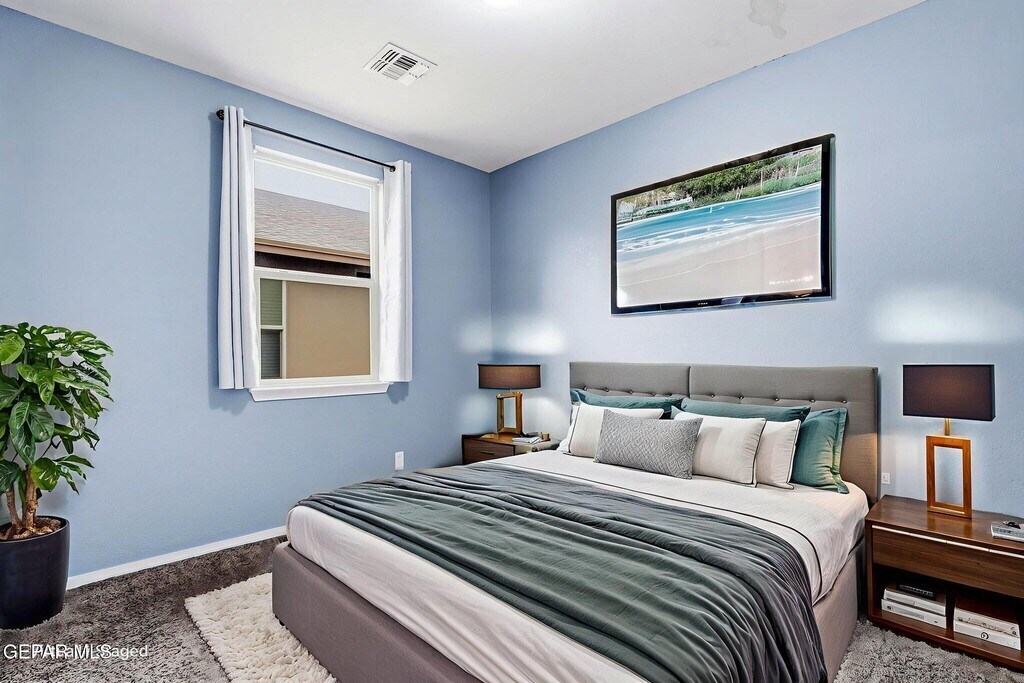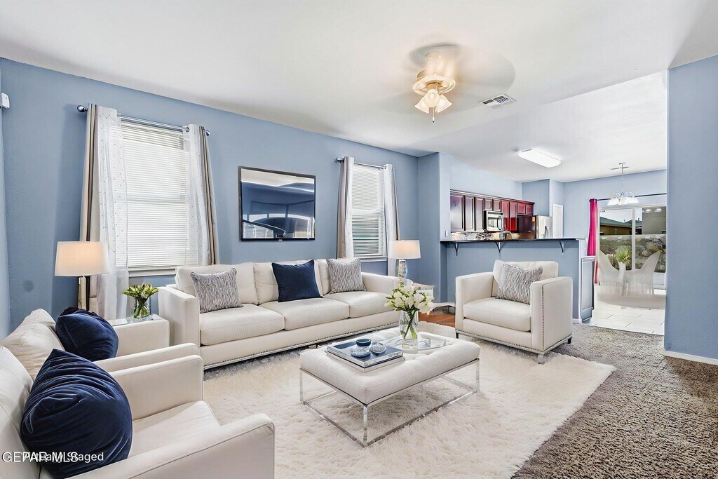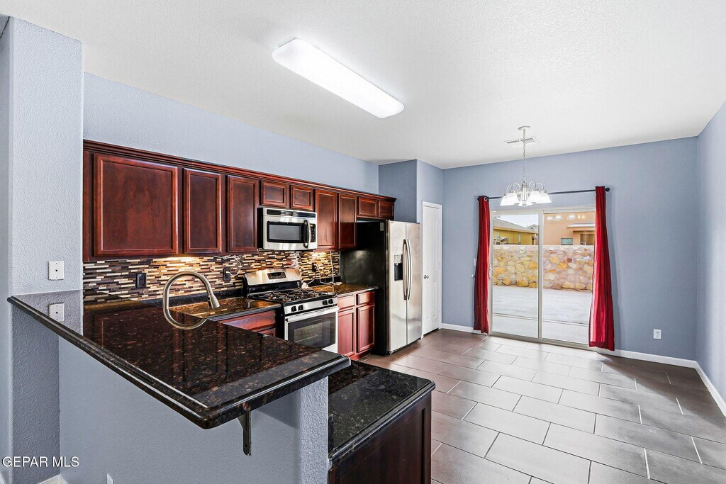 Come and make this house your home! This beautiful single-story residence features 3 bedrooms and 2 bathrooms. It offers spacious living and dining areas,along with a well-sized kitchen that includes a breakfast bar. Appliances such as a stove,refrigerator,dishwasher,and microhood are included. The generous primary bedroom has a wall-to-wall closet,and the primary bathroom features a shower/tub combination. The laundry room is conveniently located in the main hallway and it offers hookups for a washer and dryer. This home also includes a 2-car garage with opener and refrigerated air for your comfort. The easy-care landscaping is present in both the front and back yards. The spacious backyard boasts an extended cement area and planters,making it perfect for outdoor family gatherings. Conveniently located near schools,parks,and shopping,this home is less than 30 minutes away from Ft. Bliss with a quick access to Loop 375. Available now!