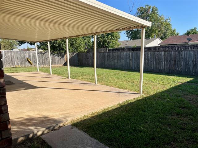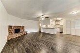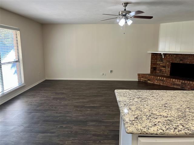 MOVE-IN AVAILABLE OCTOBER 1ST. STAINLESS STEEL FRIG INCLUDED. Beautiful 3-bedroom, 2-bath home with 2 car garage and a fully fenced-in yard. This open-concept living is situated in a great neighborhood zoned for Lewisville ISD. The gorgeous kitchen features granite countertops and stainless steel appliances, including a stainless steel refrigerator, with an open view of the very large living room with luxury vinyl flooring and a grand wood-burning brick fireplace. This home is ideal for entertaining. It offers three large bedrooms. The master suite has a beautiful en-suite bathroom and a large walk-in closet. The home also boasts a spacious 2-car garage with room for a workbench. The huge backyard is perfect for entertaining, with a wood privacy fence and a large covered patio. It is within walking distance of Wilcox Park and close to schools.