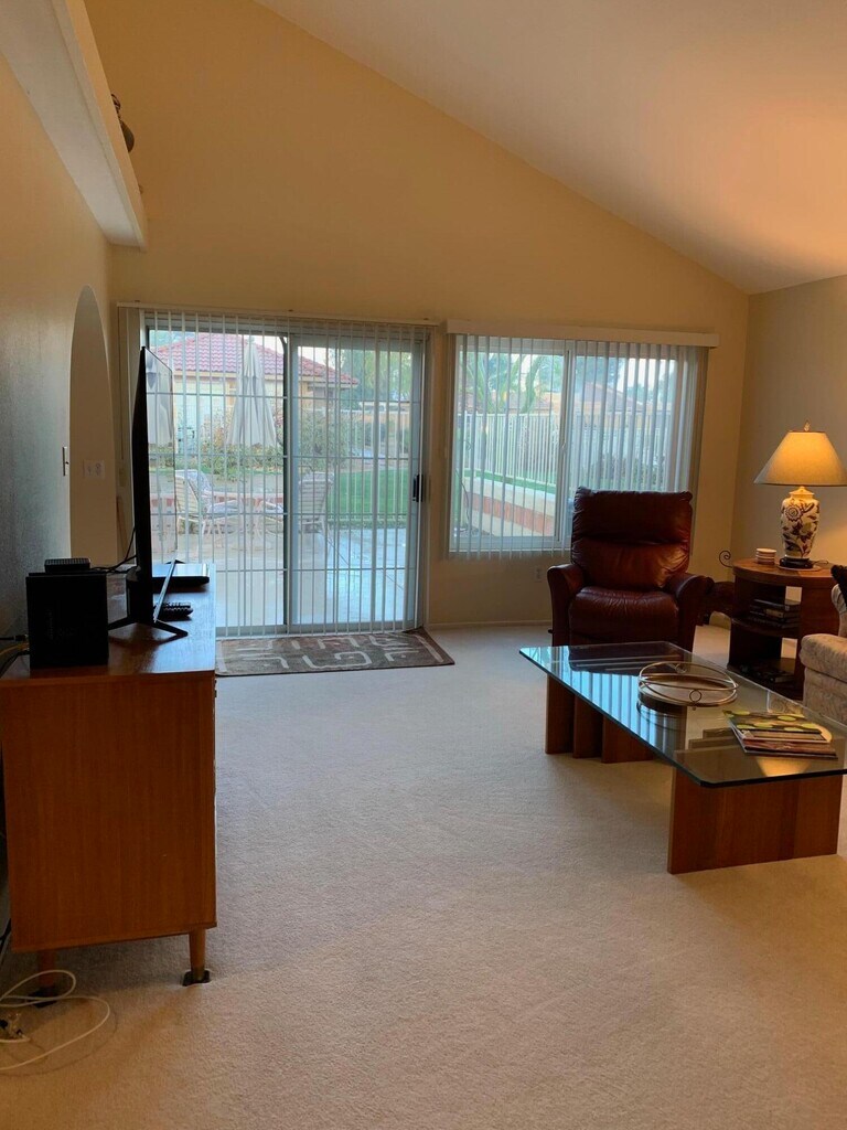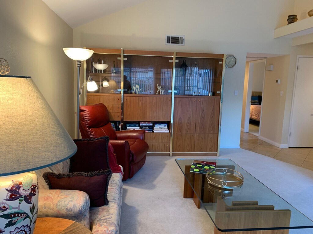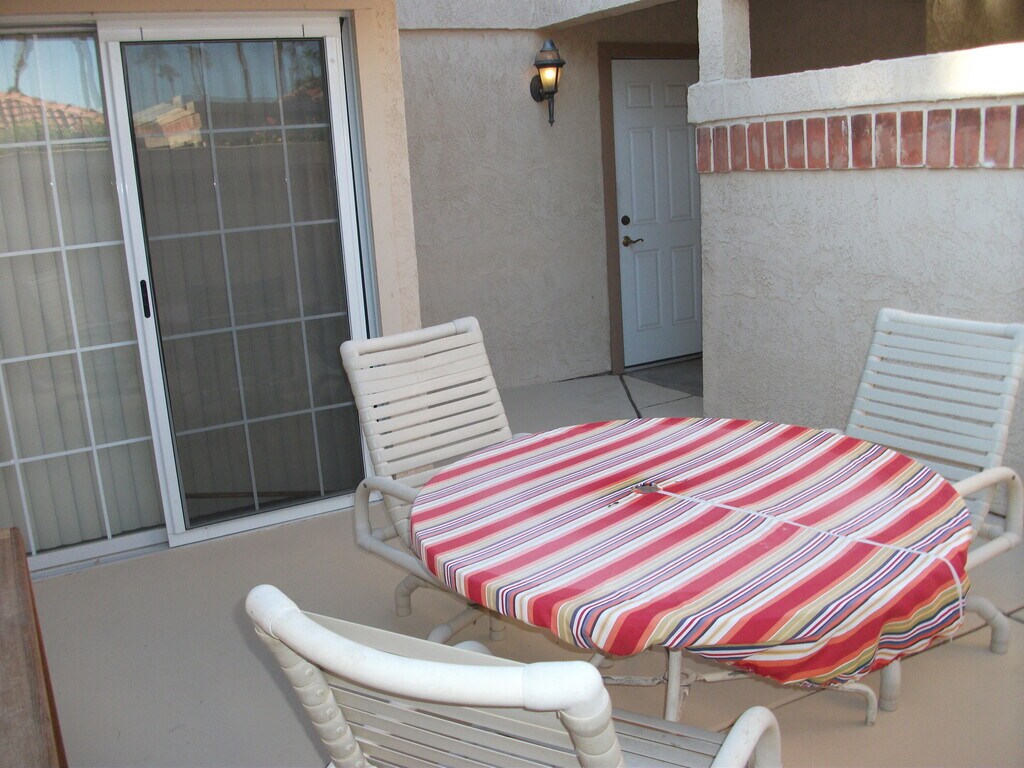 AVAILABLE Feb + Mar 2026. Leased Dec 2025,Jan,+ Apr 2026. This lovely 3 bedroom,1.75 bath condo is an end unit. Vaulted ceiling in living room enhances the feeling of spaciousness. Light & bright. Condo is offered TURNKEY FURNISHED. Nicely decorated. There is a slider from the living room out to the west patio. Master bedroom which has vaulted ceiling has slider out to private patio. Kitchen has granite counter tops and Newer appliances. Guest bedrooms are light & bright. Association pool/spa are a short walk...golf,lighted tennis,pro shop,restaurant are nearby. SEASONAL RENT $4,250.00/mo.; AVAILABLE Nov. - $3,500/mo. May thru Oct $2500/mo. HOA PROHIBITS rentals LESS than 30 Days.