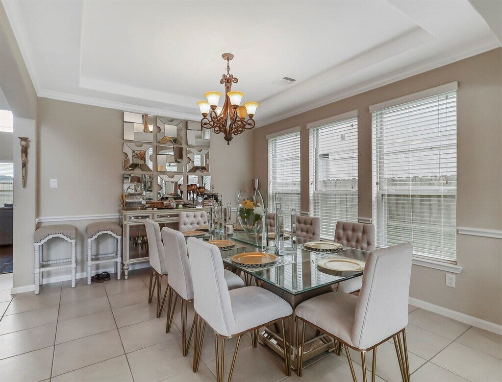 SPECTACULAR 2 Story luxurious home by Taylor Morrison offering 4 beds,3 full baths,1 half bath & conveniently located in the highly desirable Master Planned Community of Riverstone w/ tons of amenities. Grand entry w/soaring ceilings,upper level access by grand staircase,& Formal Living and Dining off to the right,great for large gatherings. Gourmet Kitchen boasts granite countertops,extended island w/Breakfast Bar,under cabinet lighting,Stainless steel appliances,custom tile backsplash & more! Breakfast Area for meals w/friends or family. Luxurious Living Room w/wall of windows & backyard access. Primary Suite w/tray ceilings & access to spa like Primary Bathroom Oasis w/dual sinks,large tub & glass encased shower. Enclosed Home Office on main floor & tons of space to make your own. Secondary beds on upper level with 2 full baths PLUS a dedicated Media Room! Backyard w/tons of greenspace & covered patio! Includes Washer,Dryer,& Refrigerator! MLS# 89514344