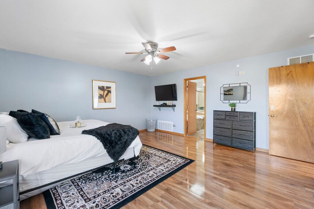 Feel at home in this beautiful 2600 sq ft single-family home located in the south suburbs, nestled between Tinley Park, Flossmoor, and Homewood, and just minutes away from I-57 and I-80. This spacious home features five bedrooms and three and a half bathrooms. One bedroom has a king-size bed, three bedrooms have a queen-size bed, and one room has two twin beds. The living room offers space for an air mattress, making a total of seven beds. The home is equipped with plenty of kitchen utensils, pots, pans, and appliances, ensuring you have everything you could possibly want in a kitchen. This family-friendly home offers garage parking and additional driveway parking if needed. It includes a pack and play sleeper, a stroller, a high chair, and a booster seat for children. The home is equipped with seven LCD televisions, all with access to Hulu, Disney, and ESPN streaming services, as well as Netflix and Prime Video (with your login). Enjoy up to 300 MBPS internet speed with an ethernet hard line available and Wi-Fi throughout the entire home. The living area features a 55" TV and a soundbar, while the gaming area has a 50" TV, and the bedrooms each have a 40" TV. The property offers a variety of entertainment options, including an arcade cabinet with 2000 classic games, an air hockey table, over 50 board games, and playing cards. Premium amenities include 10+ cooking spices and three types of cooking oils for meal preparation. Please note that fees may vary for long-term stays. Reservations require security fees paid upfront, with no exceptions to this house rule. Our office receives over 40 phone calls and inquiries a day, and with over 50 homes, inventory changes every 1-2 hours. Calendar updates are adjusted and updated on our direct site first, and we apologize for any inconvenience this may cause. [SI]