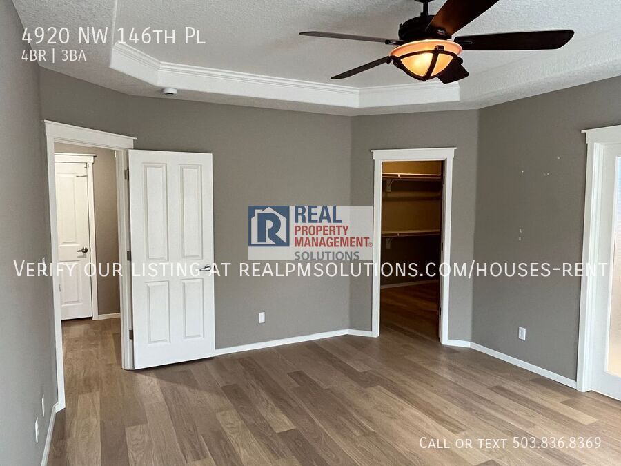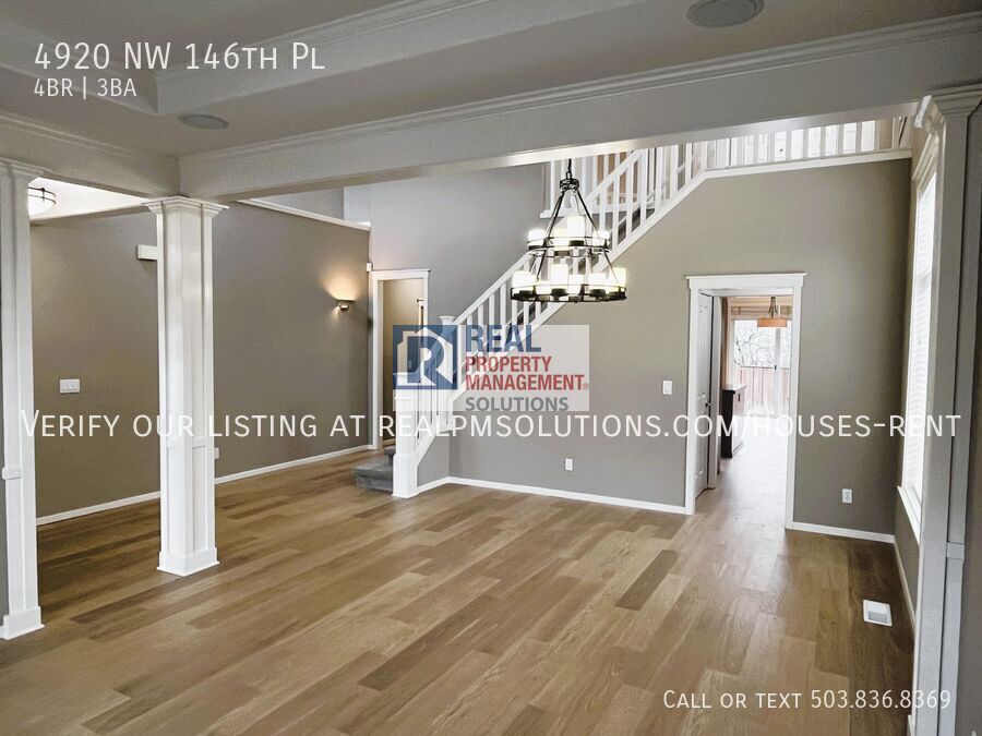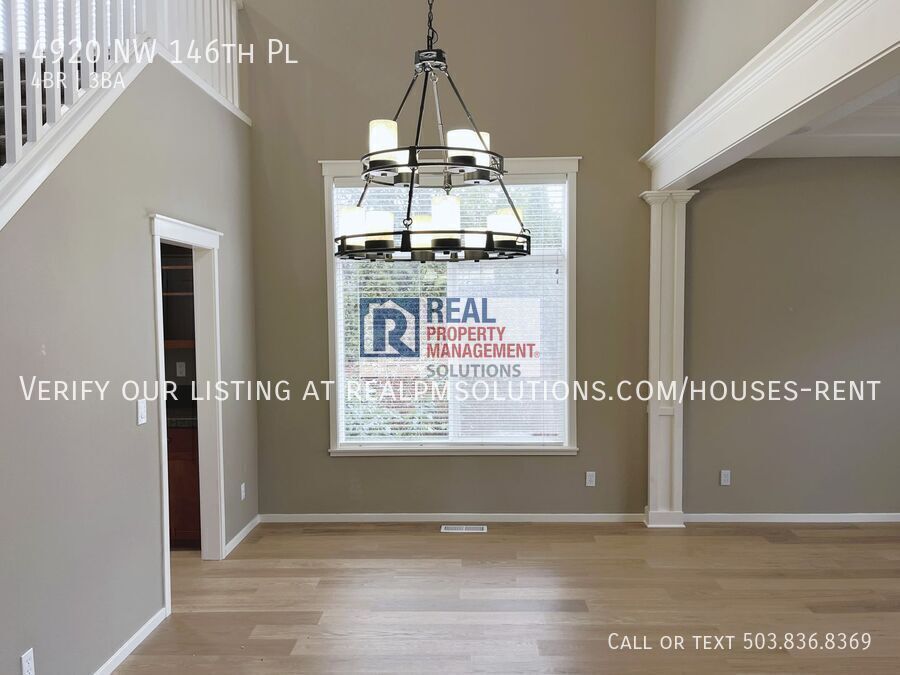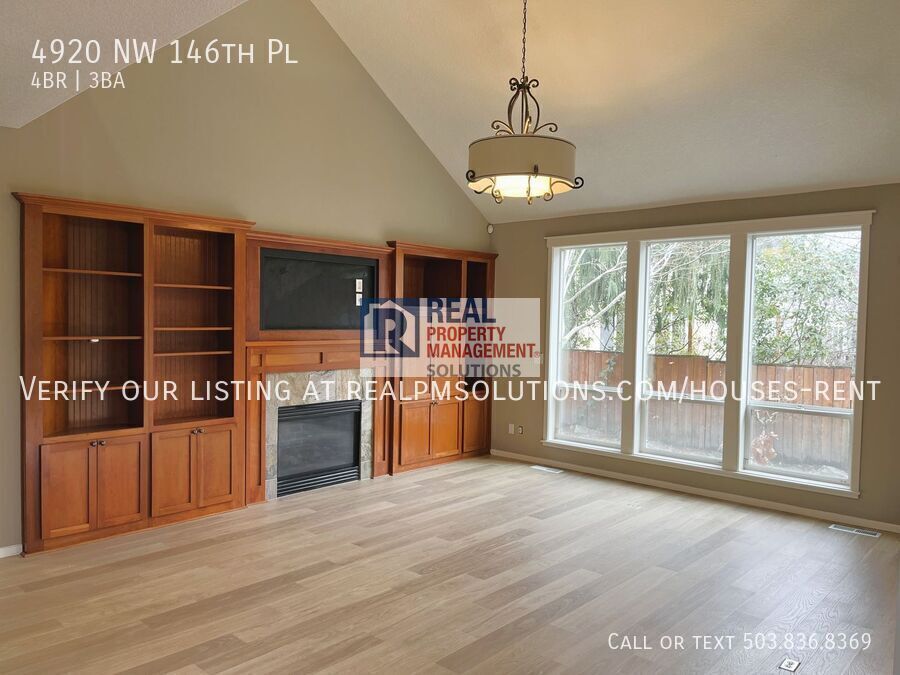 Welcome to 4920 NW 146th Pl, Portland, OR 97229, a beautifully updated home in the highly sought-after Arbor Estates neighborhood. This spacious residence offers over 2,900 square feet of refined living space, blending timeless craftsmanship with modern upgrades—including all new kitchen appliances and a new air conditioning system for year-round comfort! Enjoy unbeatable convenience to everyday amenities and major employers. Nearby grocery options include Quality Food Center, Amma Indian Groceries, and Noral Coffee, while popular dining spots such as Bethany Public House, Khao San, Taiwan Eats, and Bethany Sushi are just minutes away. Outdoor recreation awaits at Kaiser Ridge Park and Bethany Crest Park. Commuters will appreciate quick access to Hwy 26 and Hwy 217, with close proximity to downtown Portland, PCC Rock Creek, Nike, and Intel. Inside, the home showcases rich slate flooring, plush carpeting, high ceilings, and expansive floor-to-ceiling windows that flood the space with natural light. A cozy gas fireplace, custom built-in cabinetry, and elegant Craftsman-style details enhance the great room and bonus areas. A conveniently located half bath is perfect for guests. The kitchen flows seamlessly into the great room and dining area, with sliding-door access to the fenced backyard and patio—ideal for entertaining. The gourmet kitchen combines style and functionality and features: Granite countertops Large center island Custom cherry cabinetry Wet bar Brand-new stainless steel appliances, including refrigerator, gas cooktop, built-in wall ovens, and dishwasher This home offers four spacious bedrooms plus a bonus room, along with two and a half bathrooms. The main-level primary suite includes plush carpeting, a large walk-in closet, and a spa-like en-suite bath with soaking tub, dual-sink vanity, and separate shower. Upstairs, you’ll find three additional bedrooms, a full bath with tub/shower combo, and a generous bonus room—perfect for a media room, office, or play space. Outdoor living is effortless with a fully fenced backyard, paver patios, and professionally maintained landscaping. An attached oversized three-car garage provides ample parking and storage. With new A/C and new appliances throughout, this home is truly move-in ready. Transportation Scores: Walk Score: 61 – Somewhat Walkable Transit Score: 29 – Some Transit Bike Score: 65 – Bikeable This exceptional home offers space, style, and a premier NW Portland location! The Open Application Period begins 2/6/2026 at 5pm. At the start of the Open Application Period, the date and time that each completed application is received is recorded and applications are processed in the order received. If applications are received before the Open Application Period, they are subject to an 8-hour penalty and processed in the order received (see PCC 30.01.086.C.1). SCREENING CRITERIA: Screening criteria may be found at