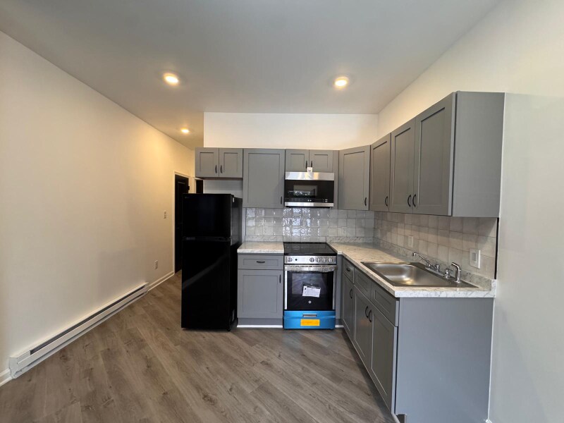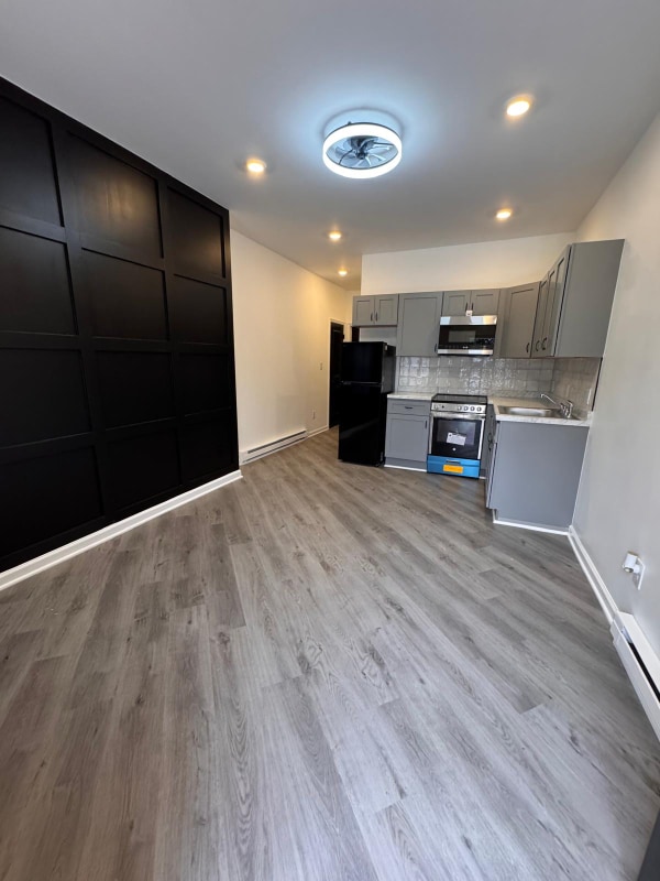 Property Id: 2234637 Welcome to 4921A Haverford Avenue — a beautifully renovated first-floor 1-bedroom apartment offering modern design, quality finishes, and its own private backyard. Step inside to an inviting living area featuring premium vinyl plank flooring, ceiling fans, and a custom black accent wall that adds a contemporary, designer touch. The brand new kitchen includes an over-range microwave, refrigerator, electric stoves and sleek new finishes. The bedroom features a large closet with double full-length mirrored doors, creating a bright, open feel and providing excellent storage. The modern bathroom includes a walk-in shower with beautiful tile work and stylish black fixtures. The unit includes an in-unit washer and dryer, eliminating the need for shared laundry or off-site facilities. Comfort is enhanced with electric heat controlled by a programmable digital thermostat. Enjoy the luxury of a private fenced backyard, perfect for relaxing, container gardening, or hosting small gatherings.
