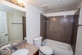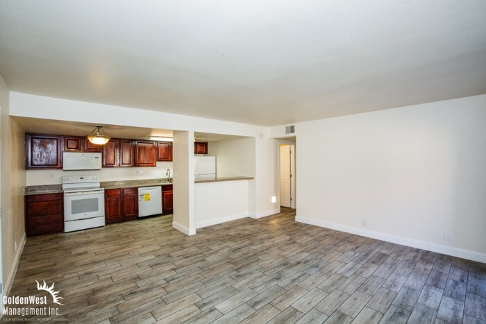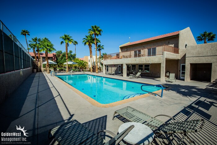 Charming 2Bdm 1Ba Condo in a Desirable Guard-Gated Community. This spacious unit features an open floor plan with abundant natural light and upgraded tile flooring throughout for easy maintenance. Whip up meals in the kitchen featuring granite countertops, rich wood cabinetry, a convenient breakfast bar, and full-size appliances - Stove, Microwave, Dishwasher, and Refrigerator. Both bedrooms are generously sized, accompanied by a well-maintained bath offering a shower/tub combo, granite vanities, and sleek tile surrounds. The living and dining areas flow seamlessly, creating a perfect space for entertaining or relaxing. The unit also provides the practicality of in-unit laundry and steps out to a private patio, perfect for morning coffee or unwinding after a long day. Residents enjoy a sparkling community pool, and tennis courts. This unit blends cozy comfort, ease of access, and lifestyle perks with proximity to local shopping, dining, and quick routes to the Strip. Tenant pays all utilities. Pets are not allowed. Contact us to schedule a showing.