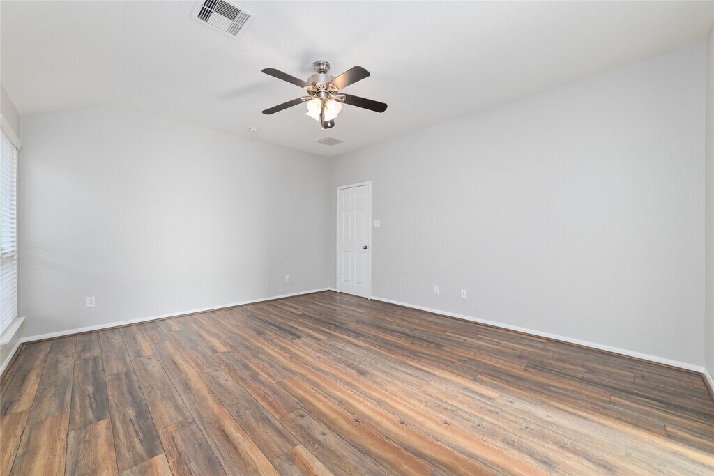 This inviting home features a well-appointed kitchen with granite countertops,a large island,stainless steel appliances,and plenty of cabinet storage. Tile and laminate flooring throughout create a sleek,low-maintenance living space,while ceiling fans in every room enhance comfort. Fresh interior paint throughout makes this home move-in ready. The spacious primary bedroom includes a private ensuite bathroom with dual vanities,a separate shower,a deep soaking tub,and an oversized walk-in closet. Enjoy entertaining or everyday meals in the formal dining area or relax outdoors on the covered back patio. Outside,the home offers attractive landscaping,full brick exterior,gutters,and a large backyard with space for a future pool or outdoor activities. Ideally located near shopping,dining,and entertainment,with quick access to Grand Parkway and I-10. MLS# 30107692