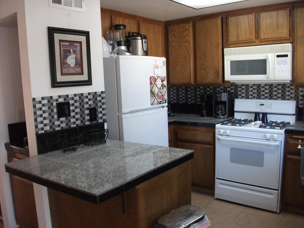 Price REDUCED - This delightful condo has vaulted ceilings in living room + both bedrooms,which enhance the feeling of spaciousness. Condo is offered TURNKEY FURNISHED. Light & bright,nicely decorated. There are sliders from dining area & primary bedroom suite out to large,enclosed west patio. Primary suite has King Bed and Guest bedroom has Queen Bed. There are TVs in the living room & primary bedroom. Kitchen has granite counter tops and newer appliances. Plantation shutters on most windows. Entry courtyard patio is enclosed. West patio is partly covered and looks out to large greenbelt and mountains. Association pool/spa are a short walk. **HOA Prohibits rentals less than 30 days. This is a wonderful place to spend the winter months.