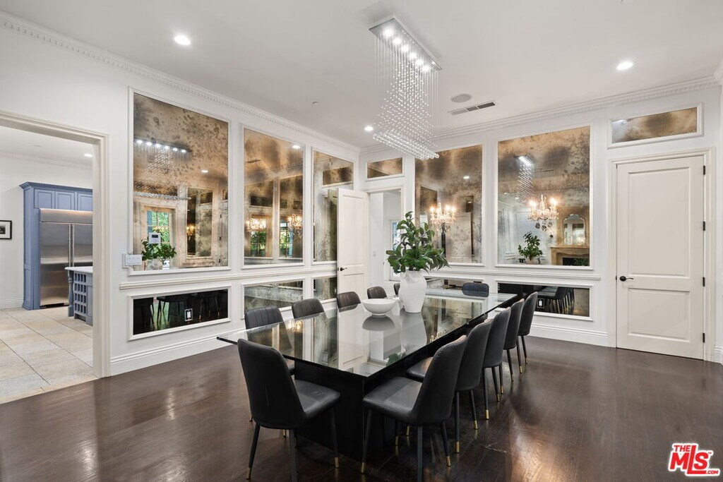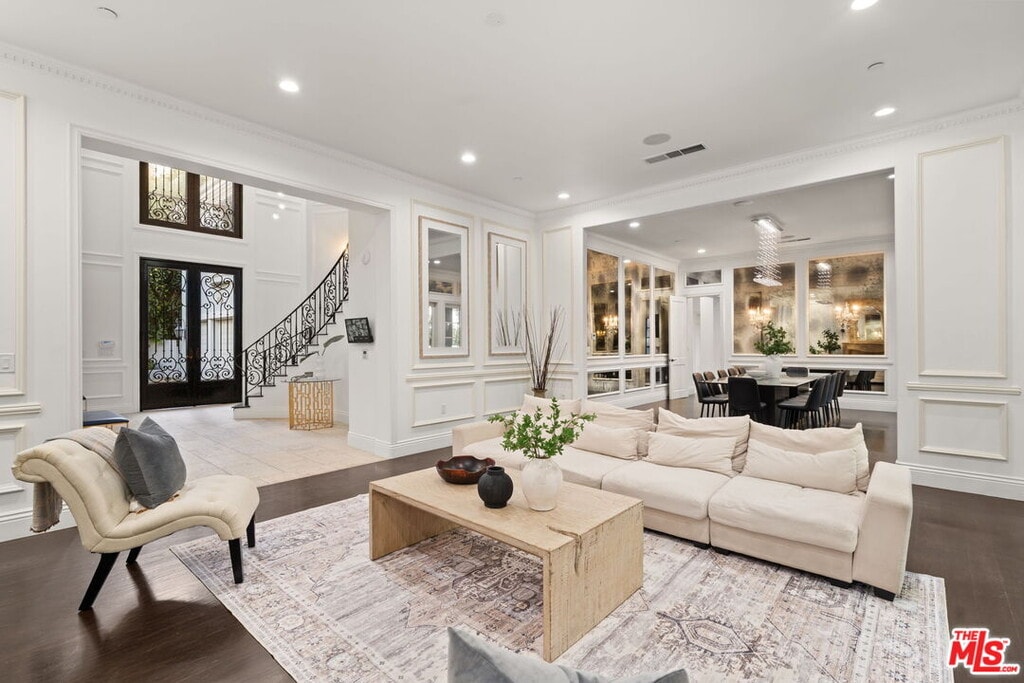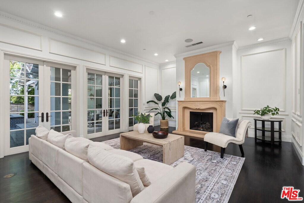 A rare offering of timeless French-inspired luxury, this stunning gated estate in prime Tarzana sits on an expansive 27,190 sq ft lot south of the Boulevard and features 7 bedrooms, 9 bathrooms, and three distinct structures: a grand main residence, a detached private movie theater house with bar and billiards, and a separate guest/pool house. A long private driveway leads to a dramatic two-story entry with soaring ceilings, a statement chandelier, and an open floor plan filled with natural light. The custom chef's kitchen is outfitted with Carrara marble countertops, a massive island, walk-in pantry, breakfast bar, and professional-grade appliances. Designer details include Italian limestone and dark hardwood flooring, crystal chandeliers, carved fireplaces, and custom interior and exterior paint. The main level offers a formal living room and den with French doors that open to resort-style grounds with a pool, spa, outdoor kitchen, built-in BBQ, dining pavilion, chandeliers, flat screens, and an outdoor movie projector. Upstairs features a gym, soundproof music studio with ensuite bath and private balcony, and a luxurious primary suite in its own wing with fireplace, private terrace, walk-in closet, and spa-style bath with steam shower. The lower level includes a sophisticated office/library and three additional ensuite bedrooms. The guest/pool house sits off the turfed play area and fire pit, completing a private, entertainer's paradise that seamlessly blends elegance, comfort, and California indoor-outdoor living. MLS# 25590551