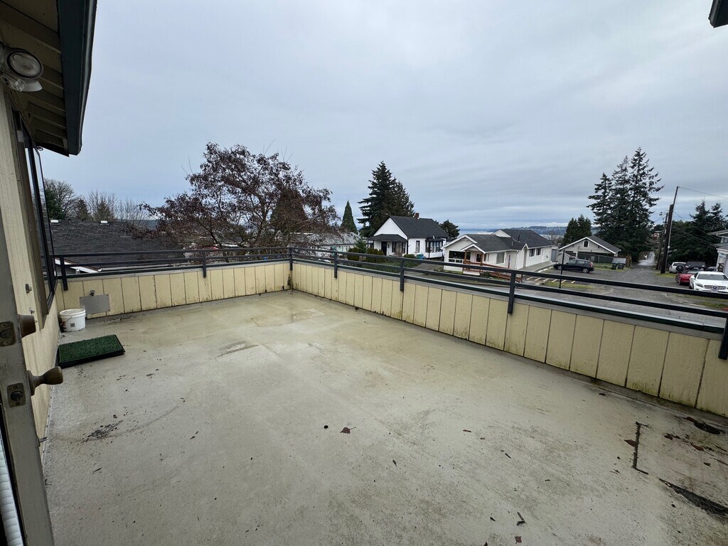 Very Spacious 2 bedroom 1 1/2 bath apartment in the N end/ Ruston area of Tacoma! The apartment is on the upper level of a commercial property, so there is a stairway to access the apartment. The business downstairs is quiet but there is no yard. Apartment has a spacious living room with wet bar and access to an east facing deck with partial water views. There is a separate large dining room and a great well appointed kitchen with eating bar. Two large bedrooms and a full bath are found down a hallway. There is also an additional half bath off the living room and a laundry/storage room close to the kitchen. This aparment is close to all the amenities of Ruston, shopping, dining, Public Transportation, Point Definance and the Vashon South End Ferry! Tenant pays electric, garbage and internet, rent includes water and sewer. 2 parking stalls also included in rent, See our website for rental criteria and for online application: https:\\ Contact for viewing or questions concerning the listing: VMI Property Management (voice) (voice or text)