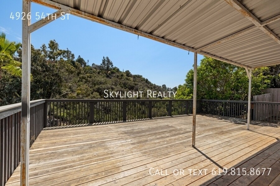 Now Leasing for 2026! Spacious 6 Bed Remodeled Home at 4926 54th Street – Walking Distance to SDSU! Book a Tour: We'd love to show you around! Call us at to schedule a tour. Copy and Paste Link to see the full virtual tour: Property features: -Spacious home with deck overlooking canyon -Large living room and common areas -Newly remodeled kitchen and bathrooms -Hardwood floors -Washer/Dryer in unit -Dishwasher Lease Terms: -12 month lease period -Pets allowed upon approval. Additional $300 pet deposit plus $50/month pet fee required. -All utilities separate from rent. Tenants set up and pay for their own electricity and wifi. $75/month per tenant flat fee for water, sewer, gas & technology fee. $43.60/month per household fee for trash. APPLICATION PROCESS: 1. All tenants (and co-signers, if applicable) must complete an application. 2. Once approved, a $1,500 initial holding deposit is due to reserve the unit and begin lease preparation. 3. The remainder of the security deposit must be submitted within 1 week or by the due date listed on the lease agreement. 4. Applicants must show a minimum monthly income of 2.5x the rent and a credit score of 650 or higher. Guarantors/co-signers are accepted. Follow Us: Stay updated with more listings by following us on Instagram: @aztec.living Listed by Skylight Realty DRE# 02222135 Single family home near SDSU