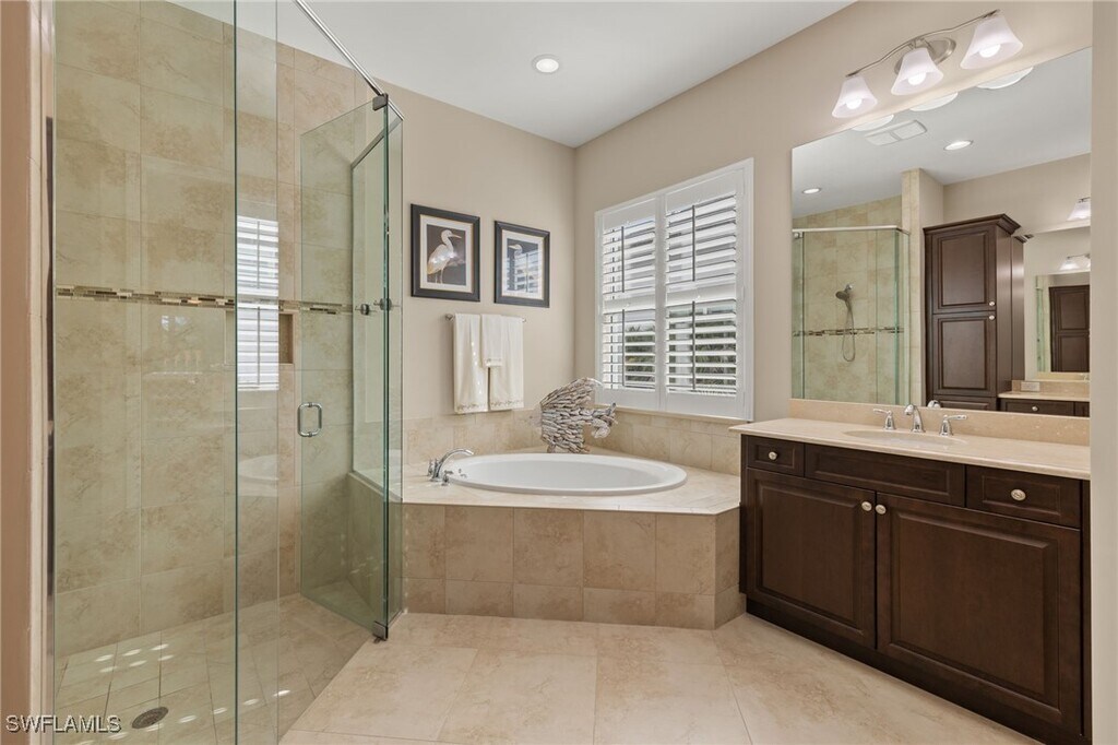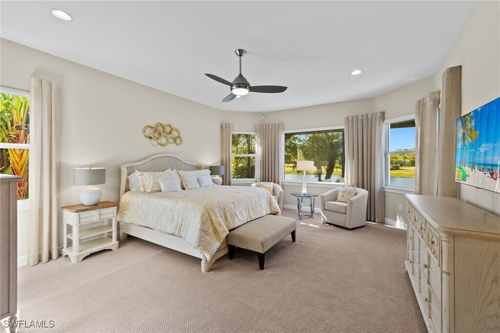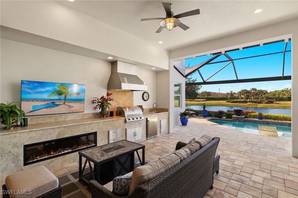 Luxurious 5-Bedroom Pool Home in The Isles of Collier Preserve – Available for Seasonal or Annual Rental. Welcome to this exceptional Lantana Grande model – a beautifully appointed 5-bedroom,4.5-bath,2-story home located in the exclusive gated community of The Isles of Collier Preserve. Offering 4,438 square feet of luxurious living space,this home is available as a short-term seasonal rental (3-month minimum) or long-term annual lease. Step inside and experience the perfect blend of comfort,sophistication,and functionality. The main level features Mohawk hardwood flooring throughout the primary living areas,a spacious great room with a built-in entertainment niche,and impact glass windows and doors for added security and stunning natural light. Recessed lighting throughout creates a warm,welcoming atmosphere. The first-floor primary suite offers a true retreat,with dual walk-in closets and a spa-inspired en suite bath featuring his-and-her sinks and marble vanity tops. Three additional well-sized bedrooms,two full bathrooms,and a large laundry room with extensive cabinetry complete the first level. Upstairs,you'll find a private guest suite with its own full bath,plus a spacious bonus room – perfect for a home office,playroom,or media space. Step out onto the expansive covered balcony to take in tranquil views and spectacular sunsets. Enjoy resort-style outdoor living with a saltwater pool and spa,sun shelf,and a picture-frame screen lanai. The Smokey Stone outdoor kitchen features Spanish marble countertops,stainless grill,refrigerator,sink,drawers,and a gas fireplace – perfect for entertaining year-round.