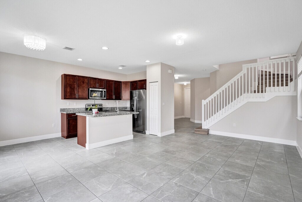 Experience modern elegance in this stunning new construction home located in the desirable Hidden Trails community. This 3-bedroom,2.5-bathroom residence features a bright,open floor plan with a freshly painted interior and brand-new wood-look flooring throughout the entire second level. The spacious main living area flows seamlessly into a generous backyard,offering tranquil water views and plenty of room for outdoor entertaining. Residents of Hidden Trails enjoy access to premium community amenities,including a sparkling pool and playground,perfect for families. Ideally situated just minutes from the Florida Turnpike,this home provides a serene lifestyle with convenient access to major highways,shopping,and dining. Move-in ready and easy to show! MLS ID B26017963