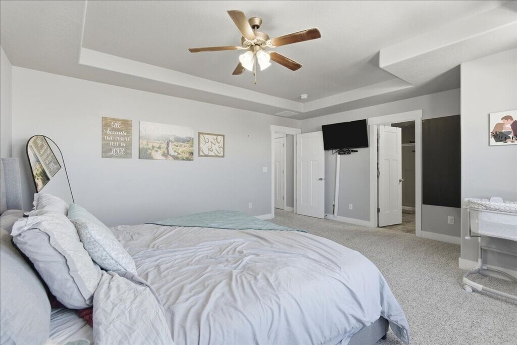 Welcome to the 4 Bedroom Herriman Home, a stunning residence located in the vibrant community of Herriman, UT. This home boasts four spacious bedrooms and 2.5 well-appointed bathrooms, offering ample space for comfort and relaxation. The home is equipped with ceiling fans in every room, ensuring a pleasant atmosphere throughout the year. Additionally, the central air system provides a consistent and comfortable indoor climate, regardless of the season. The home also features a generous 2 car garage, providing plenty of space for your vehicles or additional storage. With its blend of comfort and convenience, amazing master bedroom views. the 4 Bedroom Herriman Home is a perfect place to enjoy the Herriman lifestyle.