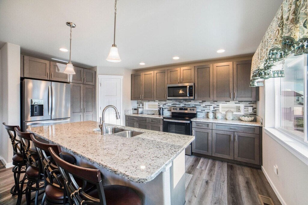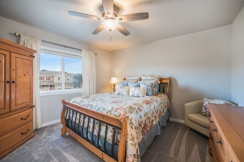 MOVE-IN SPECIAL - $500 off First Month's Rent Welcome to your oasis in the highly sought-after Springs at Waterview community! This stunning two-story home perfectly blends comfort, style, and convenience—just minutes from the Powers corridor and only 15 minutes to Fort Carson and Peterson SFB. Enjoy a peaceful neighborhood where pride of ownership shows—tree-lined sidewalks, friendly neighbors, and a true sense of community. Inside, you’ll find a bright, open layout designed for modern living. The spacious kitchen features granite countertops, an island, stainless steel appliances, a pantry, and ample cabinet space. The adjoining dining area opens onto a covered composite deck, perfect for outdoor dining or relaxing evenings. The cozy living room offers a gas fireplace and plenty of natural light. Upstairs, the primary suite impresses with beautiful Front Range views, a private ensuite bath with dual vanities and walk-in tile shower, and a generous walk-in closet. Two additional large bedrooms, a full bathroom, and an upstairs laundry area complete the second floor. The fully finished walkout basement provides even more living space—featuring a bright family room ideal for movie nights or entertaining, plus a fourth bedroom and full bath perfect for guests or extended family. Outside, enjoy your quiet, landscaped backyard with a large patio and convenient walkway connecting to the front and driveway. Don’t miss this rare opportunity to rent a beautifully maintained, move-in ready home in one of Colorado Springs’ most desirable communities! Contact Kim for more info and to schedule a tour -