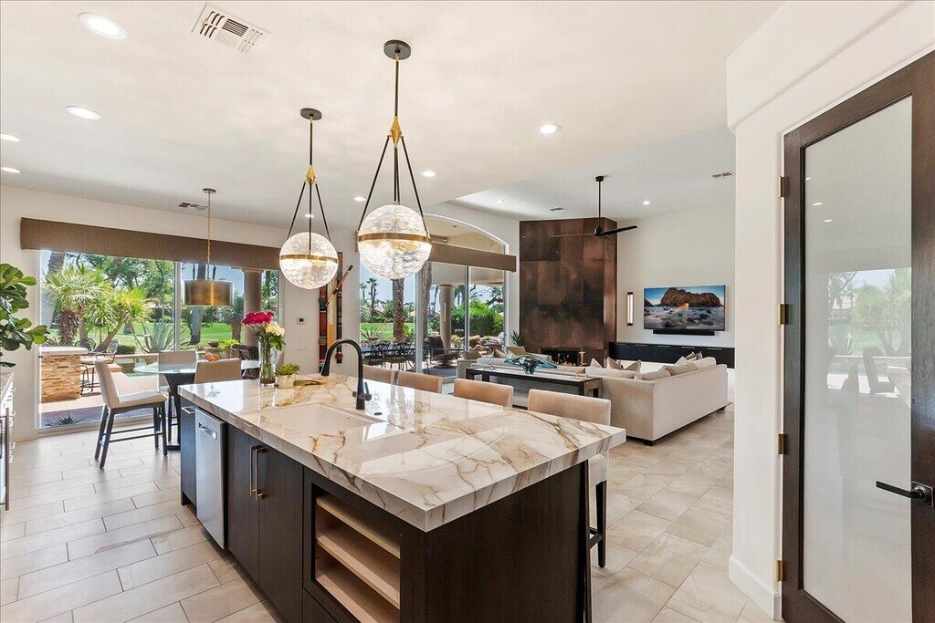 Enjoy a little piece of paradise in this renovated Montana 1 with panoramic views of the 10th hole of Jones course in Rancho la Quinta. This 4 bdrm 5 bath cornerstone of tranquility is fiercly intentional about your privacy and comfort. This luxurious home is complete with 3 bdrms inside and a large detached casita complete with a King bed and small kitchenette! The spa inspired bathrooms and a gourmet chefs kitchen all combine to supercharge your senses while blending the natural peace from a desert living experience. Now available for LEASE - Oct,Nov,Jan and April!