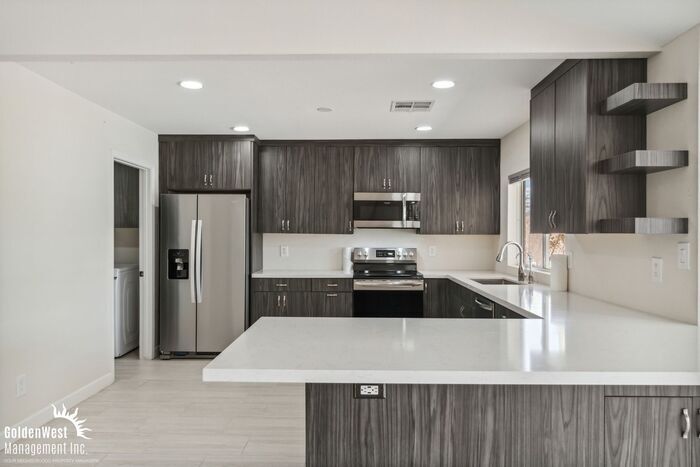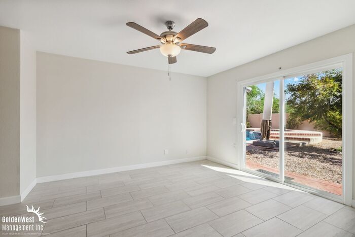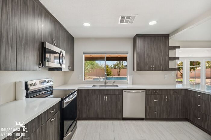 Captivating 3Bdm 2Ba Home with Pool in Scottsdale. This beautifully remodeled home features an open floor plan and tile flooring throughout. The natural light pouring in creates a bright, welcoming space. Generously sized bedrooms, each offering comfort and ample closet space. Bathrooms have been remodeled with a stunning all-tile shower, modern vanity, updated faucets, and toilet. Kitchen is equipped with high-end custom cabinets, sleek quartz countertops, and a large center-designed eat-at counter. Stainless steel appliances, including a refrigerator, oven/stove, built in microwave, and dishwasher, complete this luxurious space, making it ideal for meal prep and gatherings. Step outside to the backyard oasis where a sparkling pool awaits, perfect for Arizona summers. A covered patio provides shade, making this space ideal for outdoor dining or relaxing. Additionally, a storage shed offers convenient space for tools or equipment. Located in a prime Scottsdale neighborhood, this home is just minutes away from top-rated schools, shopping, dining, and entertainment options. With modern upgrades and a fantastic location is the perfect place to call home. Tenant Pays All Utilities. Pets with approval via process. This property allows self guided viewing without an appointment. Contact for details.