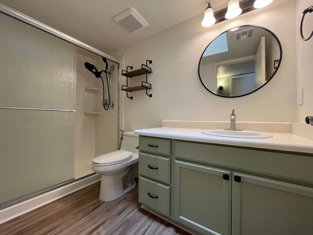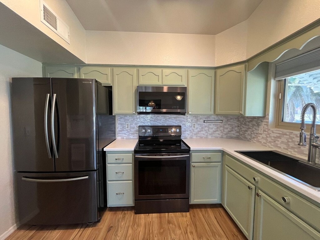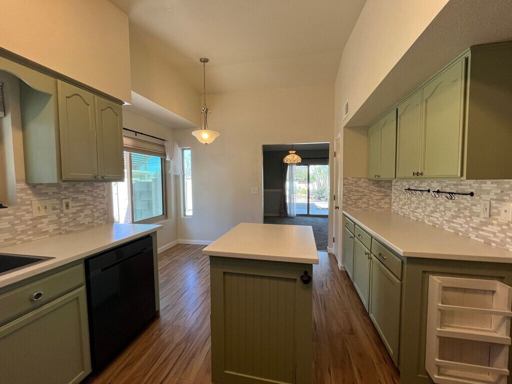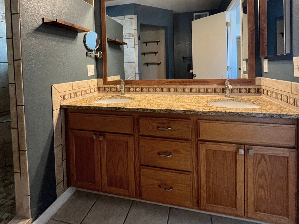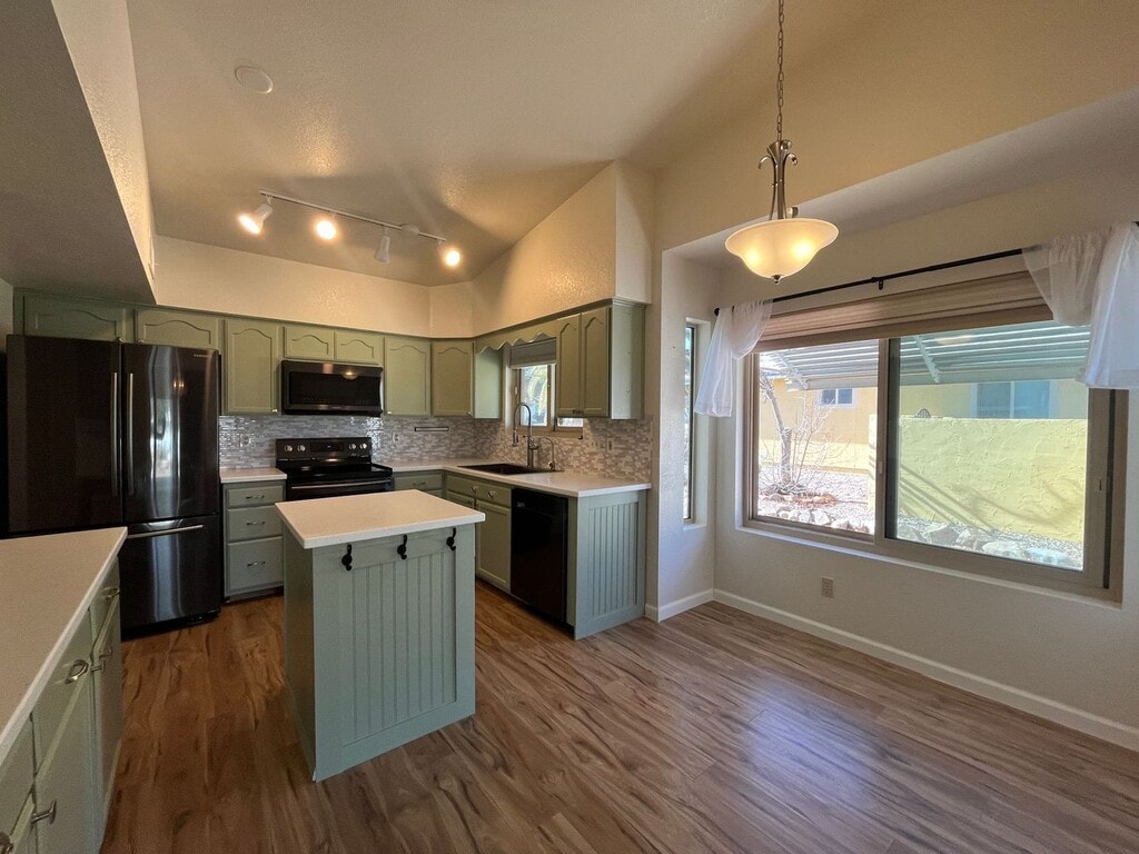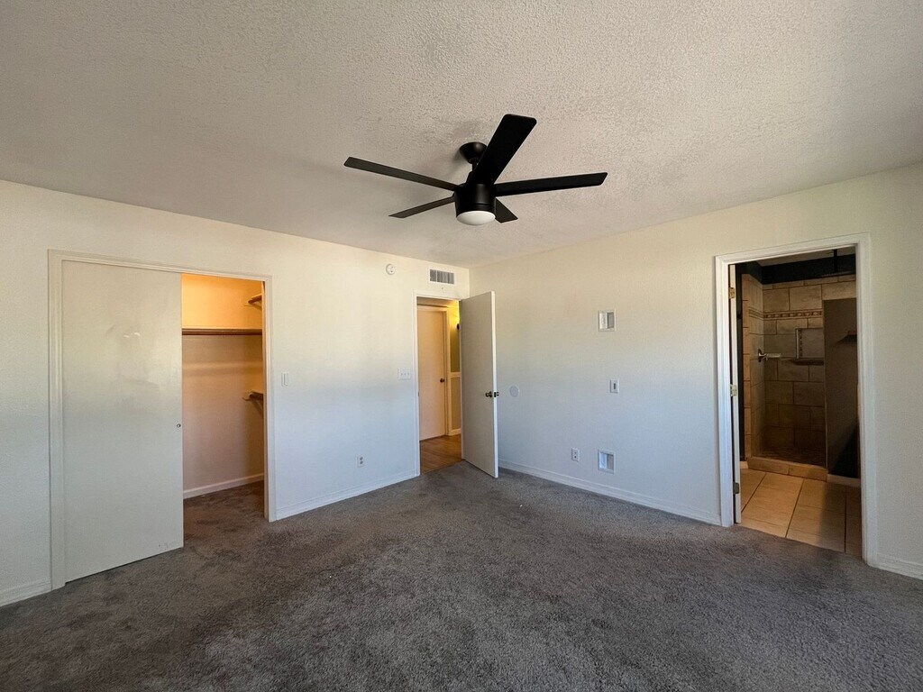 Welcome Home! This kitchen is a dream come true for any home cook, featuring black stainless steel appliances, an electric range, a built-in microwave, and a dishwasher. The kitchen also includes a pantry and an eat-in area for your convenience. The home is cooled by A/C with ceiling fans in each room, ensuring your comfort during the warmer months. Attached to the primary bedroom is a walk in closet. The en suite primary bathroom has dual sink vanities and a walk in shower. Laundry is made easy with the an unwarranted washer and dryer located in the seperate laundry room. The home also includes a 2-car garage, providing ample space for your vehicles or additional storage. The backyard is fully enclosed, offering privacy and a covered patio for your outdoor. Residents are responsible for all utilities. Pets will be considered with an additional deposit.