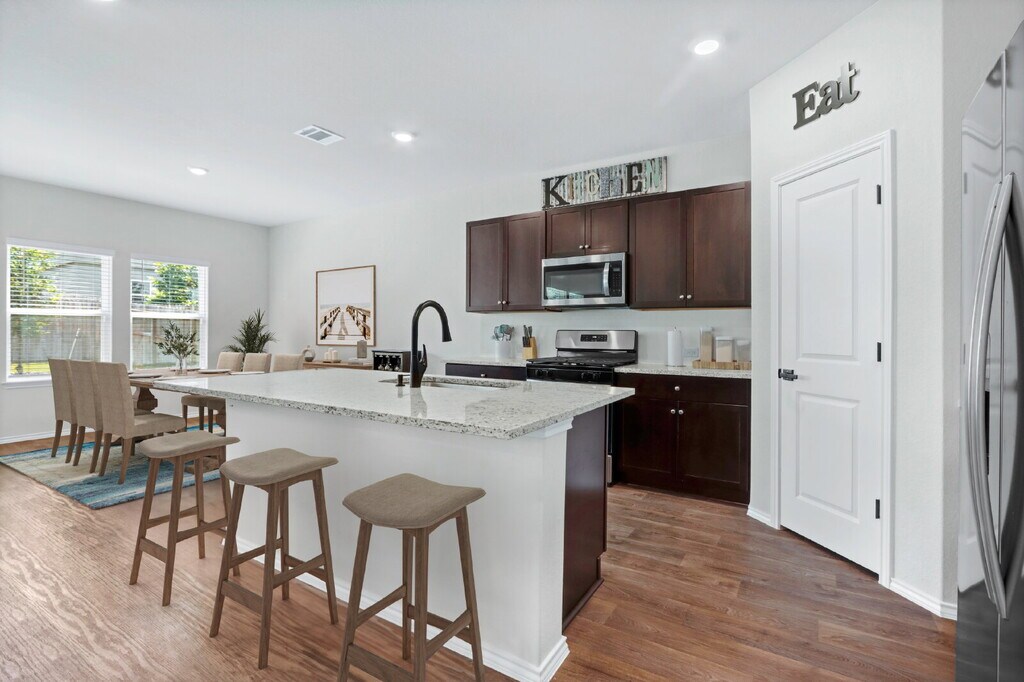 This beautiful one year old home features an open-concept layout, a contemporary kitchen, and a spacious backyard—perfect for relaxation and entertaining. Nestled in San Antonio’s fast-growing Far West Side's Riverstone at Westpointe which offers a peaceful suburban setting with easy access to Loop 1604, Hwy 151, Lackland AFB and SeaWorld. Community Amenities include the following: Resort-Style Pool & Splash Pad, Covered Pavilion & Clubhouse, Playground & Park Areas, Walking Trails & Sidewalks, Pet-Friendly Community Spaces