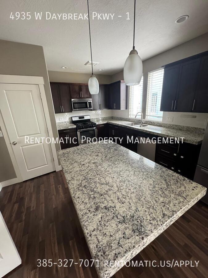 There is currently a 3 Bed 2 Bath Townhome for rent with 1,672 sq ft listed at 4935 W Daybreak Pkwy. It is Available November 1, 2025.