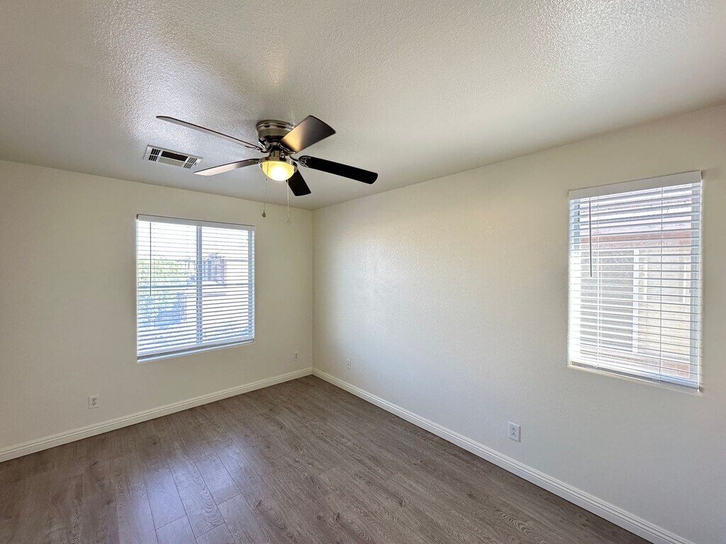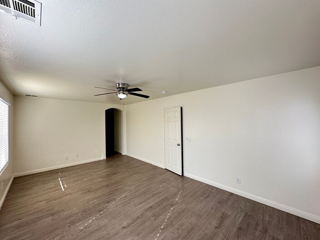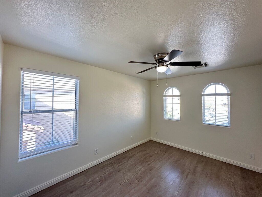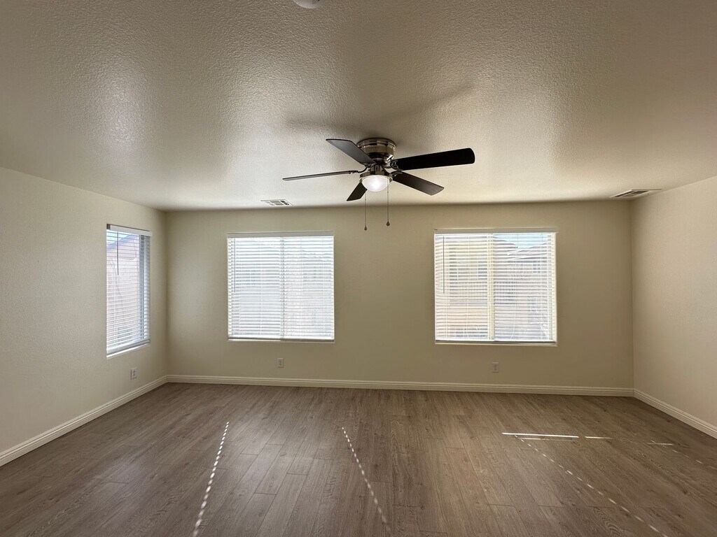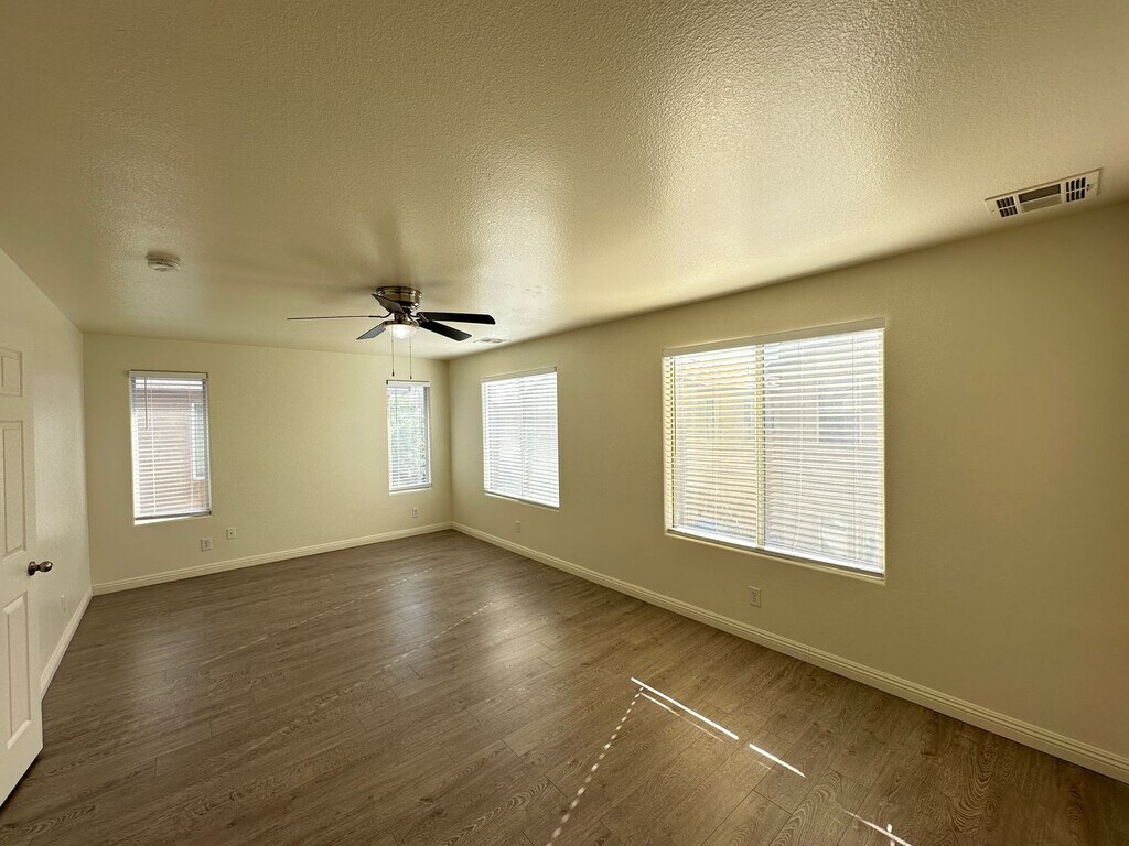Spacious 4 bedroom, 3 bathroom home featuring laminate flooring throughout—NO CARPET! Whole home has been freshly painted. Includes ceiling fans and a low-maintenance backyard, perfect for easy living. Price includes $50 for trash and sewer.