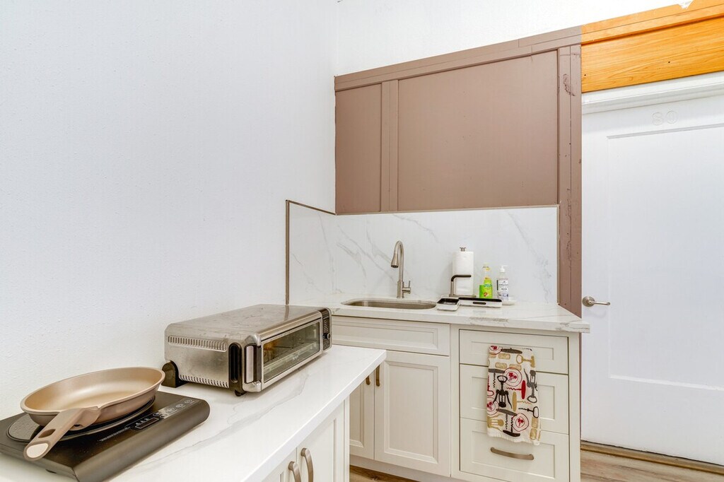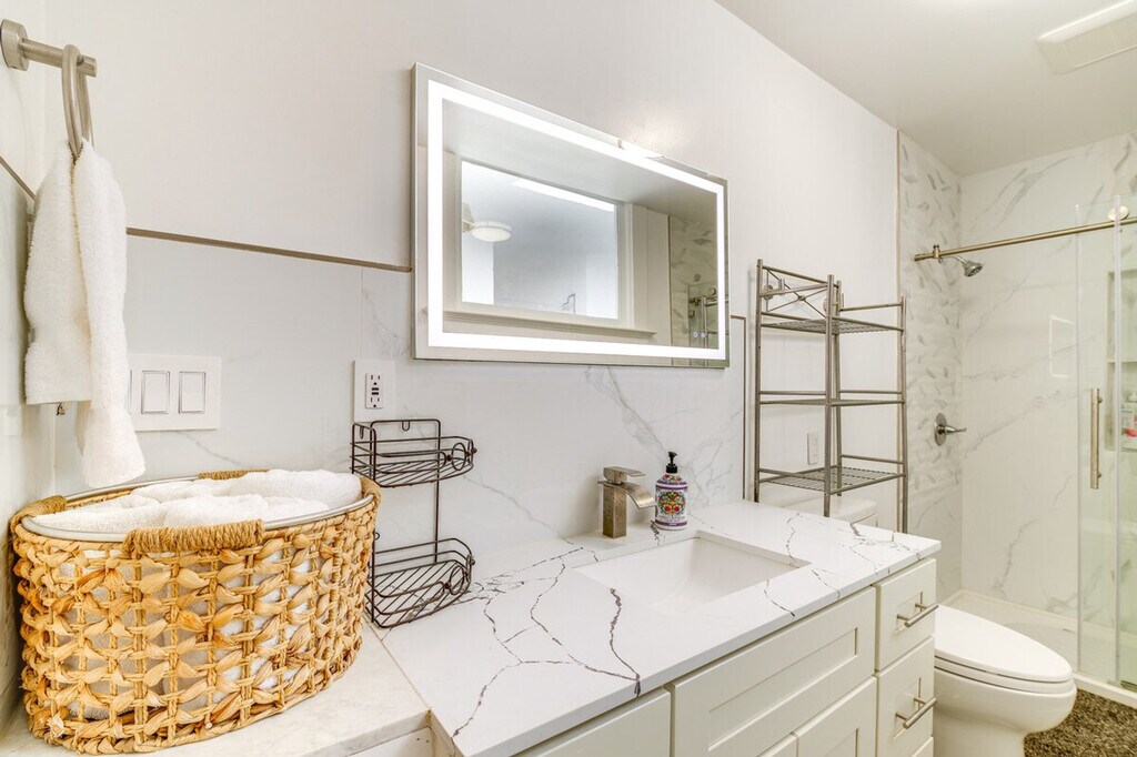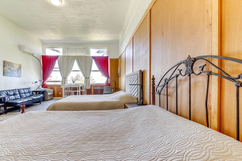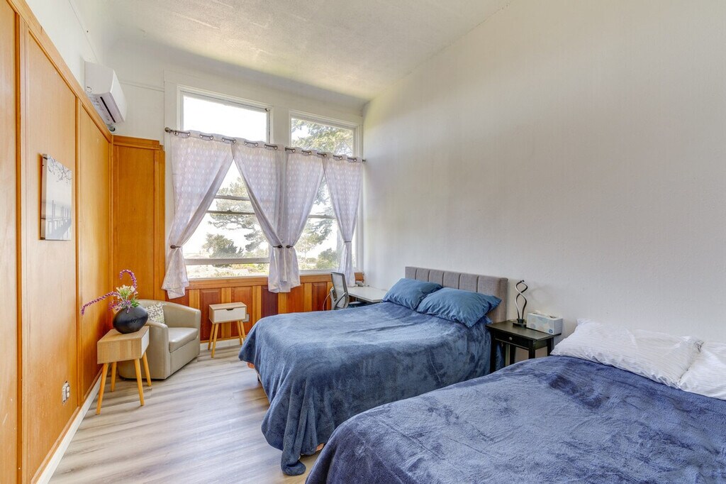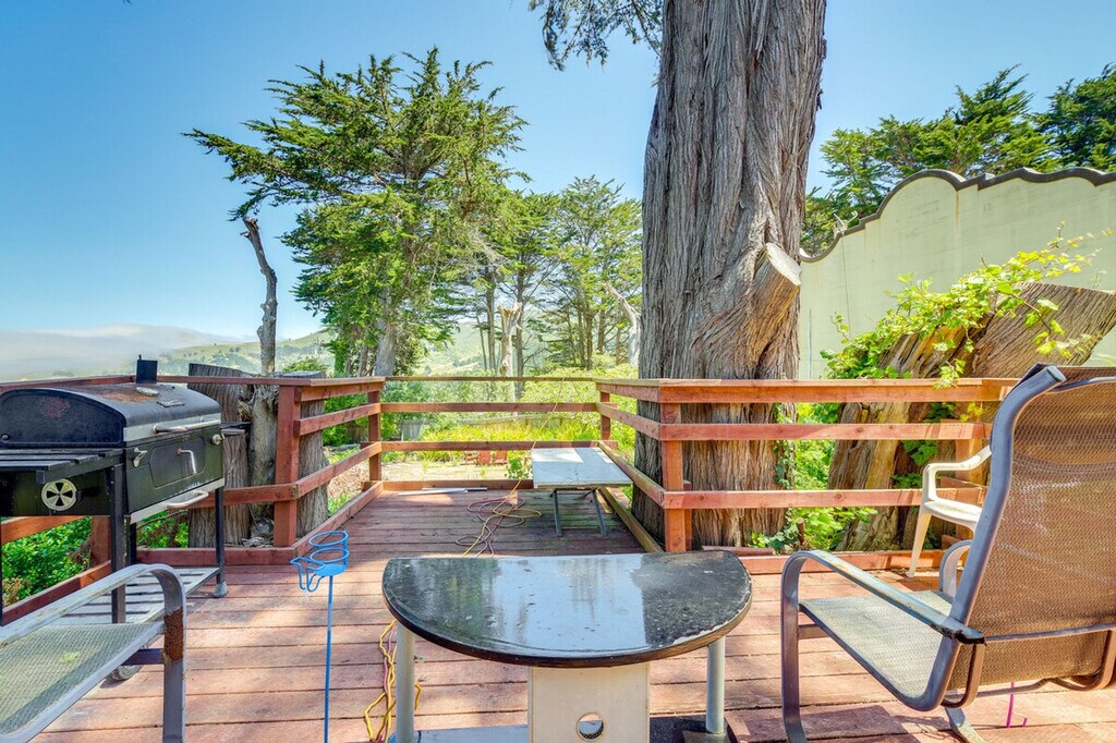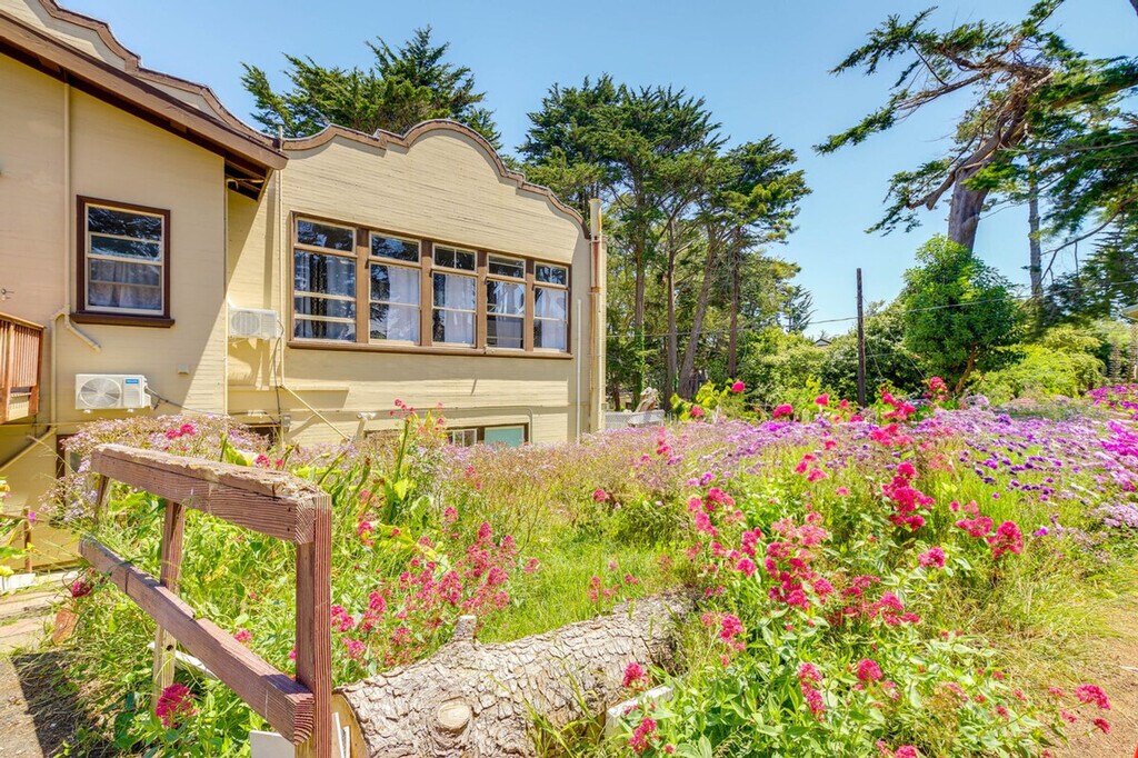 Find your way to this breezy Montara vacation rental and feel at home. Nestled in the former Montara Grammar School, this charming 2-bedroom, 1-bathroom apartment requires climbing exterior stairs to enter and 4 interior stairs immediately after entry. This apartment features a full kitchen, a Smart TV, minimalist decor, and natural light. The kitchen is equipped with a dishwasher, stove/oven, drip coffee maker, cooking utensils, pots and pans, toaster, toaster oven, microwave, slow cooker, spices, dishware, and flatware. Enjoy access to a community fitness center and an in-unit washer/dryer. Complimentary toiletries, towels, a hair dryer, ceiling fans, and central air conditioning and heat are provided. This apartment is pet-friendly with a fee of $80 plus fees and taxes. Parking is available in the driveway for 2 vehicles and in the lot. Enjoy the vibe of a wonderful little beach town while still having access to San Francisco’s big-city attractions like Pier 39 and Fisherman’s Wharf. This apartment has a private backyard, picnic table, gazebo, and access to a community courtyard with a gazebo. It is located 0.6 miles from Montara State Beach and offers ocean views in the distance. This is a non-smoking property, and events, parties, or large gatherings are prohibited. Your safety matters. This property features 1 exterior security camera located near the 2nd-floor window facing the driveway and yard gate. It does not look into any interior spaces. The camera records video and sound when activated by motion. It will record when it first senses motion and 30 seconds after the last motion is detected. A photo ID may be required upon check-in. [SI]