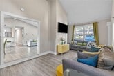 Beautifully updated 3-bedroom,2-bath single-family home with lake views in a desirable community. This open-concept home features luxury vinyl flooring throughout,an updated kitchen with granite countertops and stainless steel appliances,and a flexible bonus space ideal for a home office or creative use. The spacious primary suite includes a private ensuite with a renovated spa-style shower. Two additional bedrooms share an updated hall bath. Step outside to an oversized deck overlooking the lake,perfect for relaxing or entertaining. Conveniently located near shopping,dining,and major highways. Lakefront rental homes with modern updates are rare—don’t miss this opportunity. Schedule your private tour today.