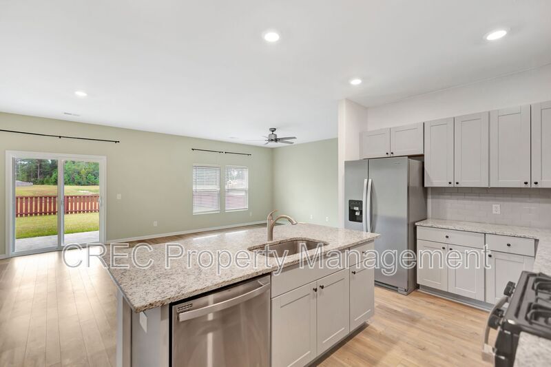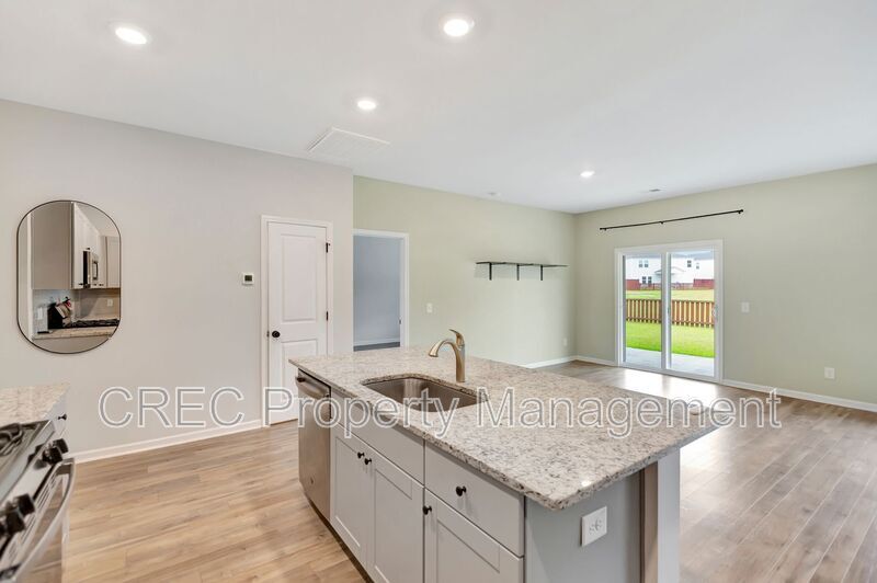 $250 off your first full month of rent! This beautifully designed one-story home offers comfort, style, and functionality in every detail. A welcoming foyer opens into a spacious great room and kitchen, creating the perfect flow for everyday living and entertaining. At the front of the home, you’ll find two versatile bedrooms, a full bath, and ample storage with both a coat and linen closet. The open-concept kitchen is a true highlight, featuring a large island with seating, sleek shaker cabinets, granite countertops, subway tile backsplash, and stainless steel appliances—including a gas range, built-in microwave, and dishwasher—all overlooking the dining area and great room. The master suite is a peaceful retreat, complete with new LVP flooring, a spacious walk-in closet, dual vanities, and a walk-in shower. Additional conveniences include a dedicated laundry room, a two-car garage with an opener and remotes, a tankless water heater, and upgraded finishes throughout—from wood laminate flooring in the main living areas to tile in baths and laundry. Step outside to relax on the patio, enjoy serene pond views, and take advantage of the pergola and enclosed fenced yard for added privacy. This home is move-in ready and thoughtfully finished, making it an ideal place to call home. All CREC PM residents are enrolled in the Resident Benefits Package (RBP) for $54.95/month, which includes liability insurance, HVAC air filter delivery (for applicable properties), move-in concierge service, on-demand pest control, and more! More details upon application. Amenities: Trash, Park, Pool, Walk/Jog Trails