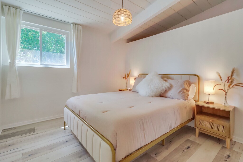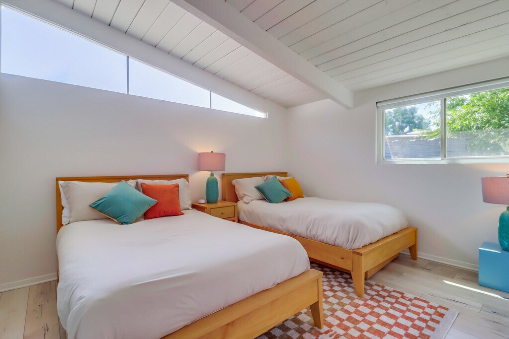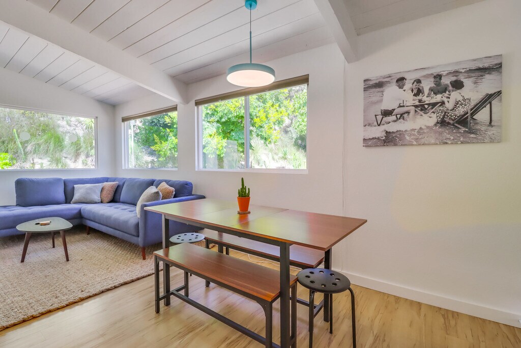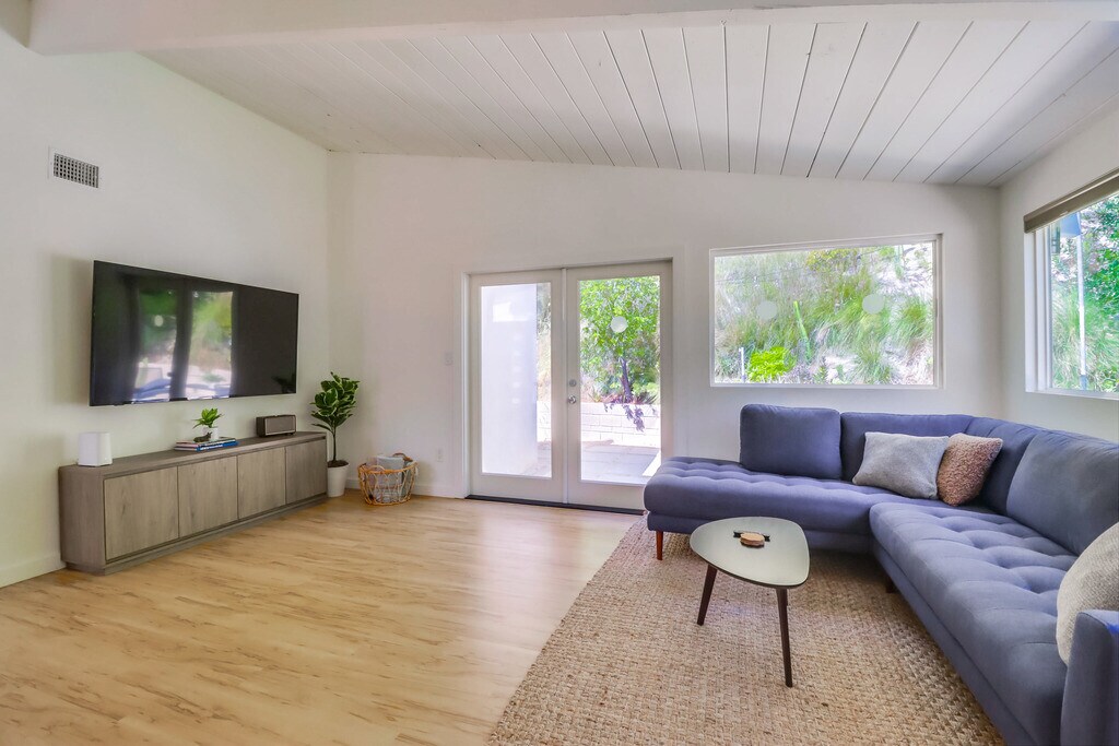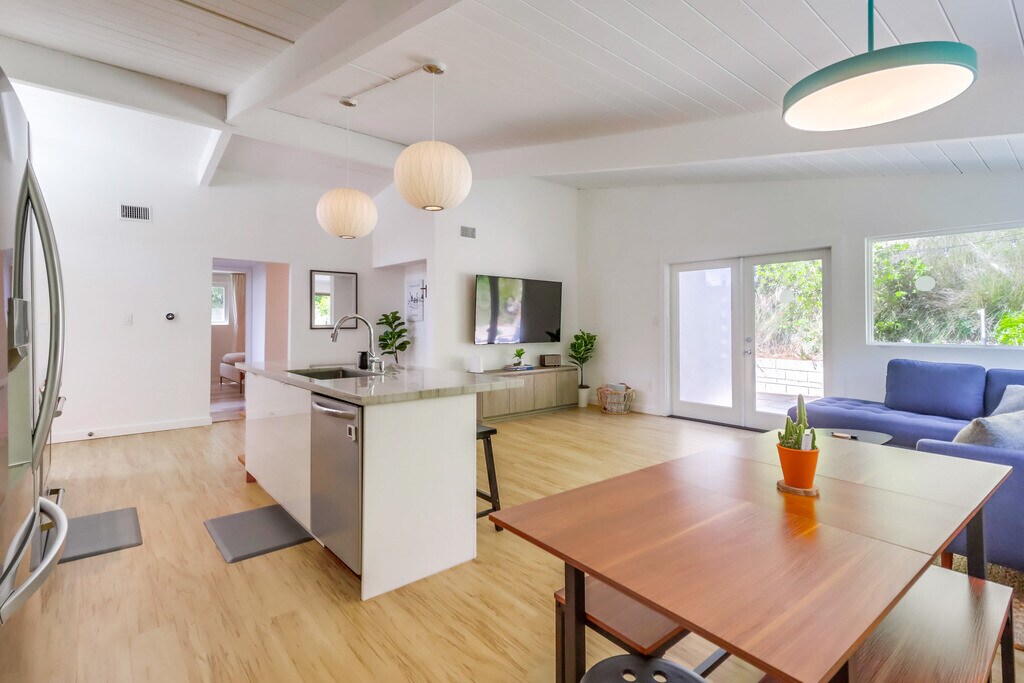 Enjoy the comfort of our newly renovated, 3BR2bath private getaway with fully equipped kitchen, bathrooms, and laundry room. The home features private yard, Hot Tub Fire Pit. The convenience of an exclusive driveway and a street parking pass. Additional side yard parking is available upon request. Inside, you'll find cozy interiors with stateoftheart appliances, offering a California modern living space including a 70 4k TV with all the streaming app essentials, powerful WIFI, games for adults and kids, and plenty of books to enjoy. ACHeat controlled by smart home technology allows for customized comfortability. Unbeatable location with seamless freeway access and minutes away from bars, restaurants, shops, and the vibrant SDSU campus. SD airport and downtown attractions are 1520 mins away. Perfect for a large family big group of friends staycation workfromhome alternative, or cozy home base while exploring everything San Diego has to offerOur San Diego getaway, the "Baja House" provides all the pleasures, perks, and pampering of a hotel but in a fullyfurnished beautiful private residence.Our singlelevel home is Nestled at the top of a culdesac, sharing its borders with a picturesque hillside, showcasing architect William Krisel's renowned midcentury modern design.Youll have plenty of space for sprawling out and enjoying the fresh air in privacy. Our instaworthy backyard includes a s'moresfriendly fire pit, plush hot tub, large artificial turf area, comfortable patio furniture, and an ecofriendly garden.Nearby Attractions SDSU University 3 min Snap Dragon Stadium 10 min DowntownLittle ItalyGaslamp District 15 min San Diego Zoo 15 min Sea World 15 min Beaches 15 min Torey Pines State National Reserve 20 min Petco Park 20 min SD Airport 20 min Seaport Village 20 min USA Mex Border 30 min Lego Land 35 min San Diego Safari Park 35 min Powered by