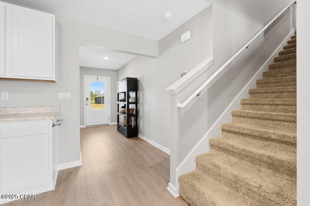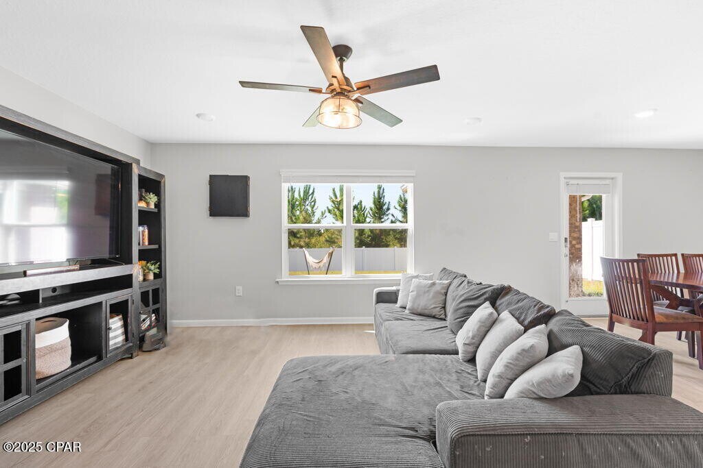 Welcome to 4944 Conner Ln in Panama City, FL a beautiful Hayden floor plan built in 2022, offering 5 bedrooms, 3 bathrooms, and 2,626 sq ft of well-designed living space. The open-concept main floor features a spacious kitchen with white cabinetry, stainless steel appliances, a walk-in pantry, and a large island that flows seamlessly into the living and dining areas, perfect for entertaining or family gatherings. Vinyl plank flooring runs through the main living spaces, while carpeted bedrooms add warmth and comfort. The current owners have taken incredible care of this home and recently invested nearly $10,000 in brand-new paint throughout, making it truly move-in ready. The primary suite offers two walk-in closets, dual vanities, and a walk-in shower, while the additional bedrooms are generously sized with plenty of natural light. Upstairs, a versatile flex room provides the perfect space for a play area, home office, media room, or anything your heart desires, while a front room on the main level can be used for formal dining or as an additional flexible space to suit your needs. A fully fenced yard adds privacy and space for outdoor enjoyment, while practical touches include a laundry room, central air, a 2-car garage, and a covered front porch. Located in the sought-after Liberty community, residents enjoy incredible amenities including a 7,500 sq ft center with a fitness facility, outdoor kitchen, two pools, basketball and pickleball courts, a splash pad, and playground. With convenient access to shopping, dining, hospitals, and just 25 minutes to Tyndall Air Force Base, this well-cared-for home combines modern design, comfort, and location ready for its new owners to move right in!