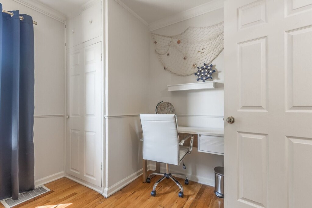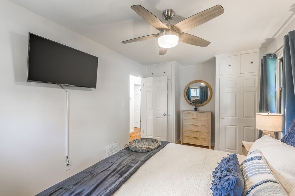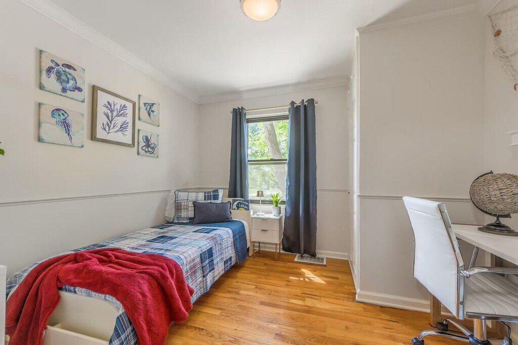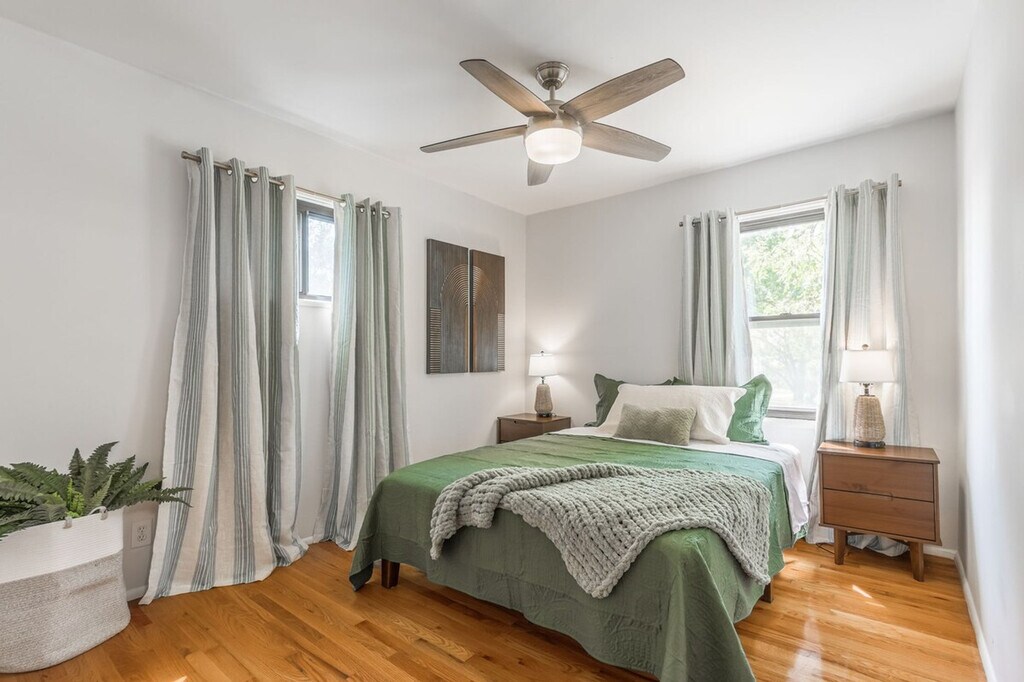 Discover solace and comfort in this meticulously designed home, ideal for corporate clients and individuals navigating the challenges of transitional living. Conveniently located just minutes from downtown, this furnished retreat offers more than just accommodation, it's a sanctuary for both rest and productivity. The new master suite is on the ground floor and wheelchair accessible. Step into your elegant home away from home. From the inviting covered porch to the master suite with a luxurious Helix king-size bed, this property offers both charm and contemporary amenities to enhance your stay. The soothing, spa-like tones, built-in features, and hardwood floors create a sophisticated ambiance perfect for relaxation after a busy day. With 1,300 sq. ft. of storage space, a garage, and in-home laundry facilities, you can manage your stay with ease and convenience. The house is also equipped with modern safety features to give you peace of mind throughout your time here. Pets are welcome. Whether you're working, relocating, or exploring, this location puts you at the heart of everything while still offering a peaceful escape. The expansive fenced-in backyard offers plenty of room for pets to play, while the fire pit and outdoor grill provide the ideal setting for relaxed evenings with colleagues or loved ones. Insurance-Ready Temporary Housing – ALE-Approved [SI]