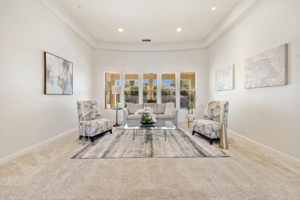 Welcome to Talante Retreat,a luxury seasonal or long-term rental home in the gated community of Talante in La Quinta! Spacious and beautifully appointed,this private desert retreat offers approximately 3,640 square feet on a single level with 4 bedrooms,each with its own en suite bathroom and walk-in closet,plus a dedicated den/office with custom built-in cabinetry and a formal dining room. Ideally located just minutes from the Empire Polo Grounds,Indian Wells Tennis Garden,world-class golf courses,shopping,dining,and entertainment,this home places you in the heart of La Quinta while still offering a peaceful,private sanctuary. Enter through the grand wrought-iron double doors to an elegant interior featuring travertine flooring,coffered ceilings,and expansive living areas designed for both entertaining and relaxing. The spacious layout offers ideal separation and privacy with a highly sought-after split floorplan,creating a comfortable retreat for family and guests alike. The primary suite serves as its own private haven,complete with a sunroom perfect for morning coffee,reading,or unwinding at the end of the day. The generous living spaces are perfect for gathering with friends or enjoying quiet time at home. The formal dining room anchors the main living space,while the thoughtfully designed layout flows seamlessly throughout the home. Step outside to your own private desert oasis set on a spacious cul-de-sac lot. The backyard features a newly constructed pool surrounded by lush landscaping,creating a tranquil space to relax,soak up the sun,and enjoy the La Quinta lifestyle year-round. Additional highlights include a three-car garage,low HOA dues,and fresh interior paint throughout. Offered furnished or unfurnished and move-in ready,this exceptional Talante home delivers the perfect blend of luxury,comfort,and privacy in one of La Quinta's most desirable gated communities. Variable seasonal rates apply. MLS # 219142652