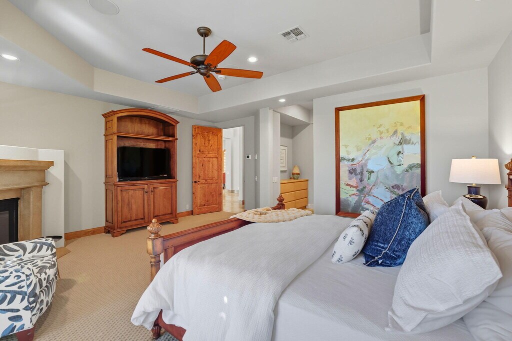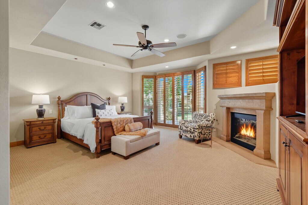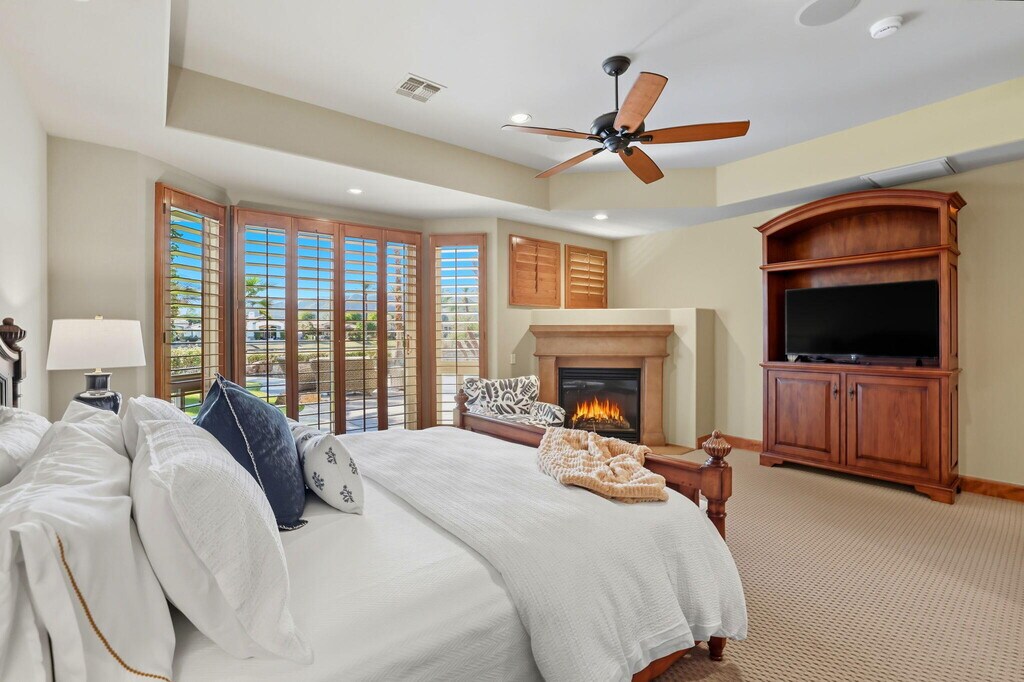 Experience desert living at its finest in this beautifully furnished home located on the 11th fairway of the Jones course in the prestigious community of Rancho La Quinta. This exceptional Montana 1 model offers breathtaking views of the Santa Rosa mountains with a lake and fairway right outside your door. The primary suite includes a king bed,luxurious ensuite bath and private patio access. The guest bdrm also offers a king bed with ensuite perfect for comfort and privacy. A dedicated office provides the perfect space for work or a quiet retreat. The detached casita offers two twin beds,a seating area and full bathroom - ideal for guests. The open concept great room boasts high ceilings,a beautiful fireplace and walls of windows framing the gorgeous golf course views! The gourmet kitchen features granite countertops and a large island perfect for entertaining. A separate dinning area completes the inviting interior layout. Step outside to a spacious patio designed for relaxation and entertaining,featuring a built-in fire pit surrounded by ample seating - perfect for enjoying cool desert evenings under the stars. A BBQ station makes outdoor dining effortless,while the gorgeous fresh water pool invite you to unwind and take in the views! This outdoor oasis captures the essence of desert resort living. Available Nov 1 2025 - May 1 2026