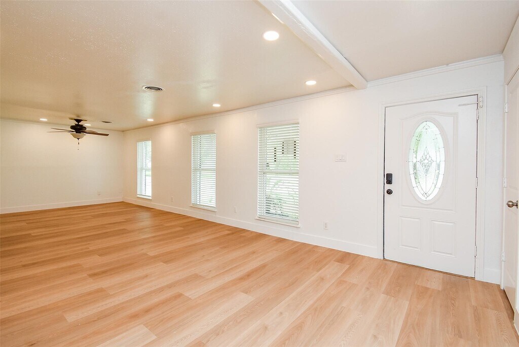 Discover this move-in ready Meyerland gem at 4947 Cheena Dr,just two blocks from Kolter Elementary. This fully renovated 3-bedroom,2-bath ranch sits on a spacious corner lot and offers updated luxury wood floors,designer paint,and an open living/dining area with a brick fireplace. The modern kitchen includes stainless steel appliances,and the primary suite features a spa-like bath. Enjoy abundant natural light,smart storage,two additional bedrooms,and a full laundry room with hookups. Outside,a large fenced yard,gated driveway,detached garage,and mature trees create the perfect outdoor space. With quick access to I-610/US-59,the Medical Center,Galleria,NRG,Meyerland Plaza,and Downtown,this home checks every box. Updated,well-located,and walkable to Kolter—schedule your showing today. MLS# 29002320