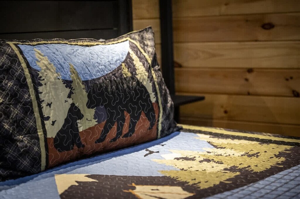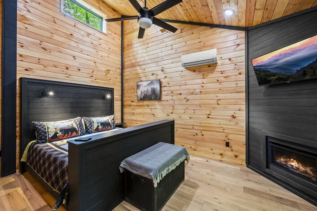 Enjoy a stay and feel at home in this newly built Black Bear Lodge, perfect for vacations with family and friends. This cabin features a fully stocked kitchen with bar seating, a cozy living, dining, and porch area, smart TVs, Wi-Fi, two indoor fireplaces, and a fire pit with chairs. Pets are welcome with a fee of $150 for up to 2 pets. Nearby hiking trails include Gabes Mountain Trail to Hen Wallow Falls, Mouse Creek Falls via Big Creek Trail, Maddron Bald Trail to Albright Grove Loop, Big Creek Trail, Lower Mount Cammerer Trail, and Snake Den Ridge Trail. The Greenbrier restaurant is a 23-minute drive (14.6 miles) away. Guests are required to sign a Rental Agreement, and the minimum age to rent is 18 years old. [SI]