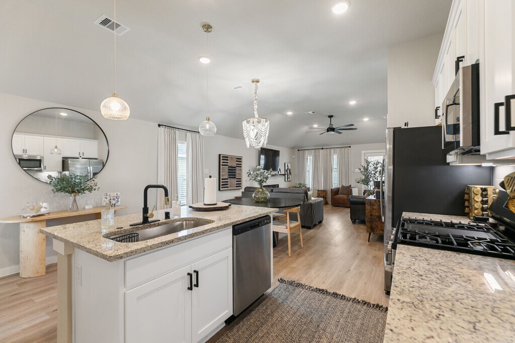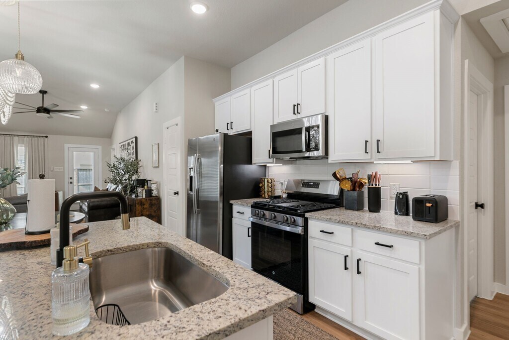Stylishly updated & meticulously maintained 1 year old home in the quiet new community of Ambrose! Features include a whole-home water filtration & softening system,a sleek electric fireplace,modern finishes throughout,and no back neighbors! Across the street you'll enjoy the neighborhood park & splash pad,plus nearby lake & walking trail. Easy access to I-45 for shopping,dining,and commuting convenience. MLS# 92096086