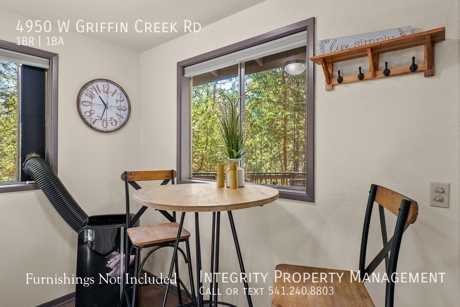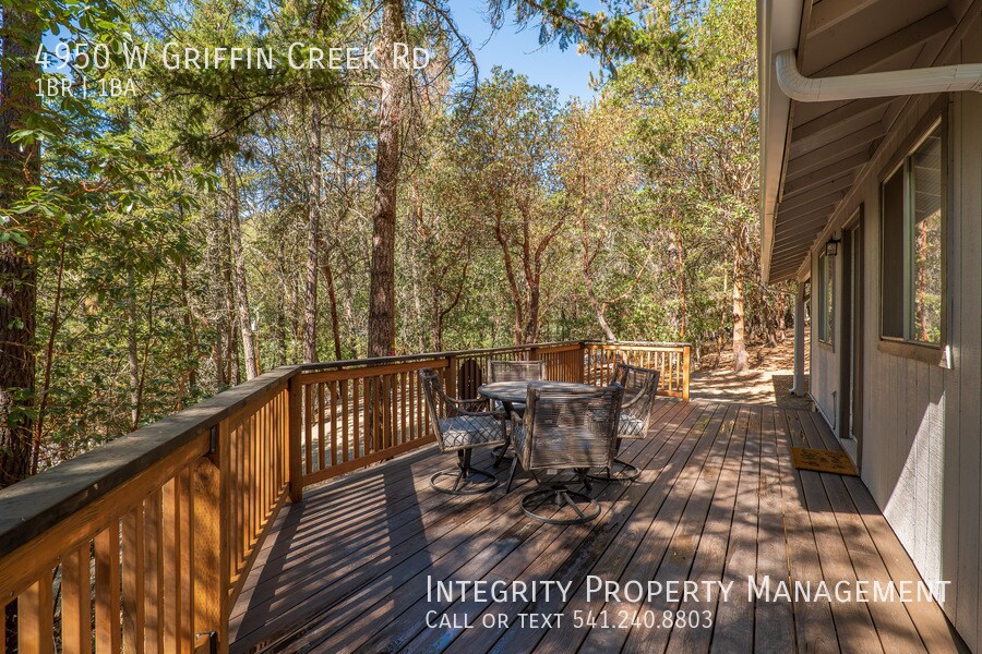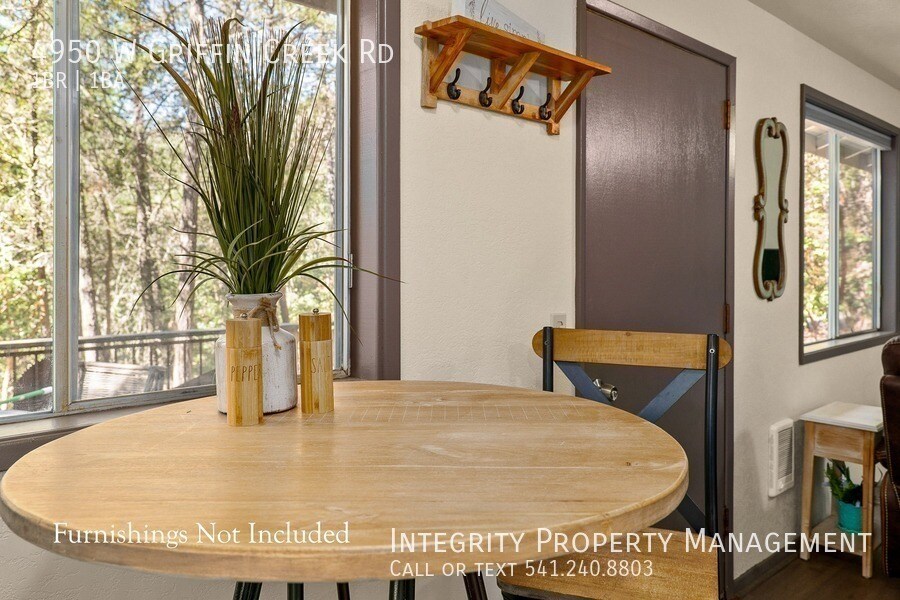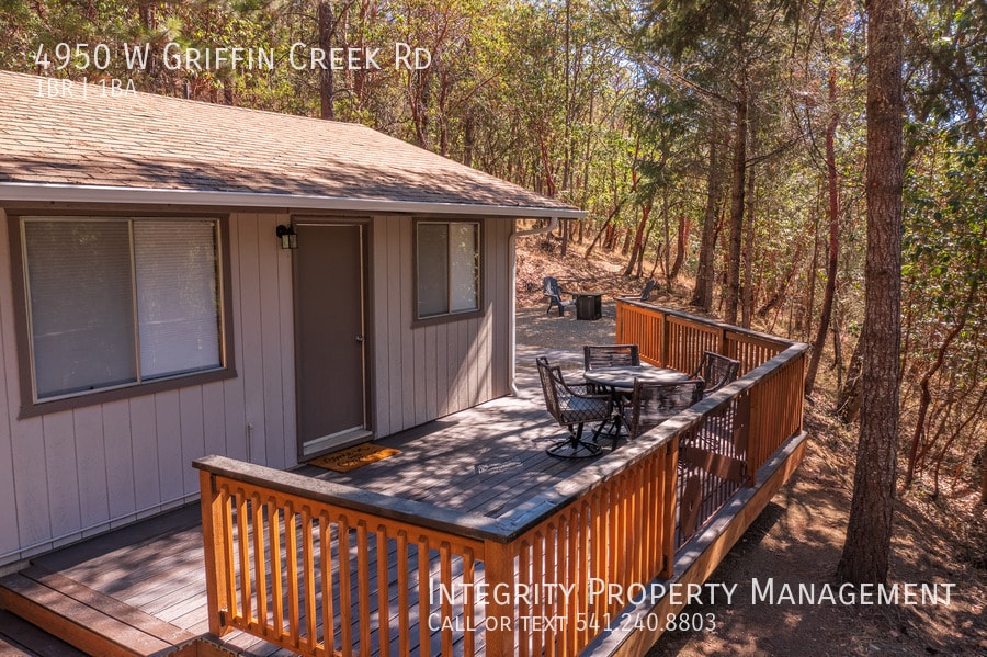 Escape to your own peaceful woodland retreat in this charming 1 bed, 1 bath home tucked away among mature trees and natural surroundings. Enjoy quiet mornings and relaxing evenings on the spacious covered deck overlooking the forested landscape. Inside, the home features warm wood-style flooring, a comfortable living area with large windows that bring in natural light and serene views, and a thoughtfully designed layout that maximizes space. The kitchen includes newer appliances, and a stackable washer/dryer is conveniently provided. A cozy bedroom nook and dedicated workspace make it perfect for working from home or unwinding in privacy. With a covered carport, ample outdoor space, and a truly secluded setting, this property offers the perfect blend of comfort and tranquility. Rental is unfurnished, furnishings pictures are for illustration purposes only. Frequently Asked Questions: STATUS: February 25 PET RESTRICTIONS: No pets. SMOKING: No smoking, no vaping, no marijuana INCOME REQUIREMENT: Gross 3 times monthly rent CREDIT REQUIREMENT: At least 600. MOVE-IN COSTS: First Month Pro-rated, Security Deposit $2500 DEPOSIT TO HOLD: $500 upon approval, holds up to 7 days. SHOWING INSTRUCTIONS: Schedule Online: APPLICATION INSTRUCTIONS (HOW TO APPLY): Apply online. All complete applications are processed as they are received. First approved applicant to submit $500 deposit gets unit. Go to If applying with a Pet or Assistance Animal, complete profile at HOUSING ASSISTANCE: Income must meet 3x the amount of tenant portion, plus utilities. More Information: • Property Description Details • AREA INFORMATION: Located on W Griffin Creek Rd, south of Medford/Jacksonville FLOORING: LVP GARAGE/PARKING :1 Car Carport, additional area available KITCHEN APPLIANCES INCLUDED: Fridge, oven/stove, dishwasher LAUNDRY APPLIANCES INCLUDED: Stackable Included HEATING/COOLING: Electrical Wall Heater / Portable AC PROPERTY TYPE: Single Family Dwelling UTILITIES INCLUDED: Water/Septic. Tenant responsible for Power, Trash, Internet (ViaSat) MAX OCCUPANCY: 2 per ORS 90.262 YEAR BUILT: 1978 • Application, Lease Terms, and Fees • *ADDITIONAL FEES NOT INCLUDED IN RENT: APPLICATION FEE: $55 RENTER'S INSURANCE: Required unless exempt by ORS 90.222 APPLICATION TURNAROUND TIME: 2-3 business days LEASE DURATION: 12 months • HOA Instructions • None *All information is deemed reliable but not guaranteed and is subject to change.* All Integrity Property Management residents have the exciting opportunity to enroll in the Resident Benefits Package (RBP)! For just $39.95/month residents can enjoy exclusive benefits including HVAC Quarterly Filter Deliveries, comprehensive renter's insurance coverage, credit building to boost their credit score with timely rent payments, up to $1M in Identity Theft Protection, our top-notch resident rewards program, and much more! Residents can enhance their RBP by adding on-demand pest control for an additional $14/month.