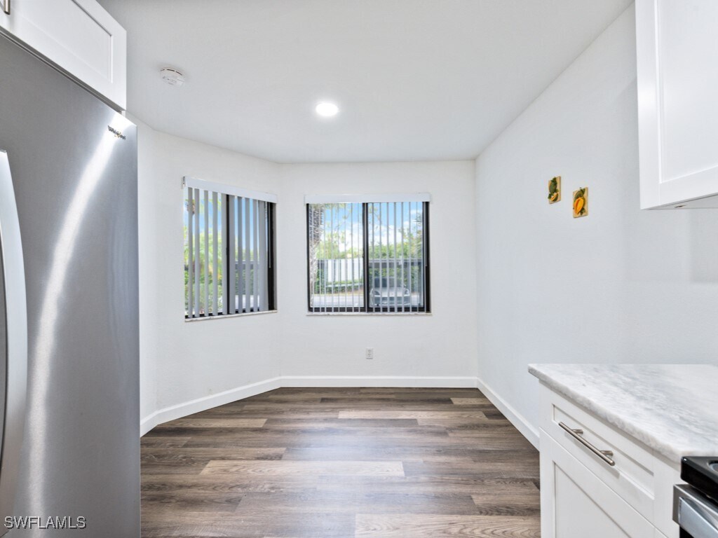 Located minutes from Gulf beaches,experience the perfect blend of modern updates and prime location in this light and airy Regency Woods condo. The sleek contemporary kitchen boasts stainless steel appliances,ample cabinetry,and a charming breakfast nook. The spacious living area flows into a screened lanai,providing an ideal setting for relaxation and entertaining. The primary suite offers a walk-in closet and spa-like ensuite bath,while the spacious guest room and a second updated bath ensure comfort and convenience for all. Additional features include a dedicated laundry room for ease and a covered parking spot. Enjoy the sparkling community pool steps away for refreshing swims. Regency Woods is ideally located in an unbeatable area,minutes from vibrant Olde Naples,entertainment,shops,restaurants,golf courses,and many other conveniences. Don’t miss out on this exceptional rental opportunity!