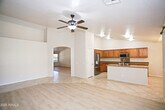 This stunning 4-bed,2-bath home features a unique interior design with abundant natural light throughout. The modern kitchen includes separate island with quartz countertop. A dedicated dining area and private family room create comfortable spaces for daily living,while spacious main living area provides a warm welcome for guests. The high ceilings enhance home's open and elegant atmosphere. Step outside to a beautifully backyard with covered patio,blend of desert landscaping and natural grass for easy maintenance. Mature trees in both front and back yards help keep the home cool during summer. 3-car garage offers ample parking and additional storage space with built-in wooden cabinets. Enjoy the serene community lake,ideal for morning or evening walks. Conveniently located near major employers,the Snedigar Sports Complex,shopping centers,popular restaurants,and more,this home combines comfort,convenience,and charm.