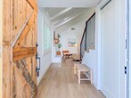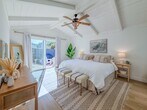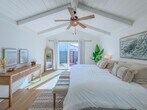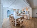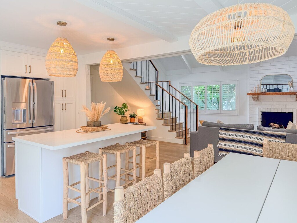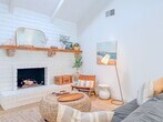 Welcome to 4954 Dolphin Way, a classic coastal retreat designed for easy living and carefree days by the shore. From the moment you step inside, the home opens into a bright, beach-inspired living space with tall ceilings, hardwood floors, and sunlight streaming in from every direction. The open floor plan creates a breezy flow from the living area to the fully equipped kitchen, where stainless steel appliances, generous counter space, and an inviting island provide everything needed for preparing meals after a day in the sand. The adjacent dining area offers ample seating and sits beside a sliding door that leads directly to the patio and convenient outdoor shower, echoing the effortless rhythm of life near the ocean. Up a short flight of stairs, the loft unfolds into a relaxing escape ideal for gathering. This spacious hideaway features a large sectional sofa, an oversized TV for movie nights, and a well-appointed wet bar—perfect for enjoying refreshments after an afternoon in the sun. Beyond the loft, a full bathroom serves two comfortable bedrooms: one with a king-sized bed and the other thoughtfully arranged with bunkbeds to welcome family or guests. The primary suite is tucked at the back of the home, offering a peaceful retreat with its own ensuite bathroom and sliding door access to the expansive patio. Here, evenings are meant to be savored with a gentle ocean breeze, a barbecue ready for grilling, lounge chairs for unwinding, and a dining table set for al fresco meals under the coastal sky. Utilities are simplified with a $150 monthly flat-rate fee, and bi-monthly gardening is included to keep the grounds fresh and inviting. The home offers essential appliances—including a maintained refrigerator and washer/dryer—as well as gas heating and a cozy gas fireplace for cooler coastal evenings. While air conditioning is not included, the natural beach airflow keeps the home comfortable year-round. Parking is convenient with access to the garage for one vehicle and space for two to three additional cars in the driveway. Please note that pets are not permitted. 4954 Dolphin Way brings together comfort, charm, and the timeless ease of seaside living—an ideal setting for creating lasting memories along the coast.