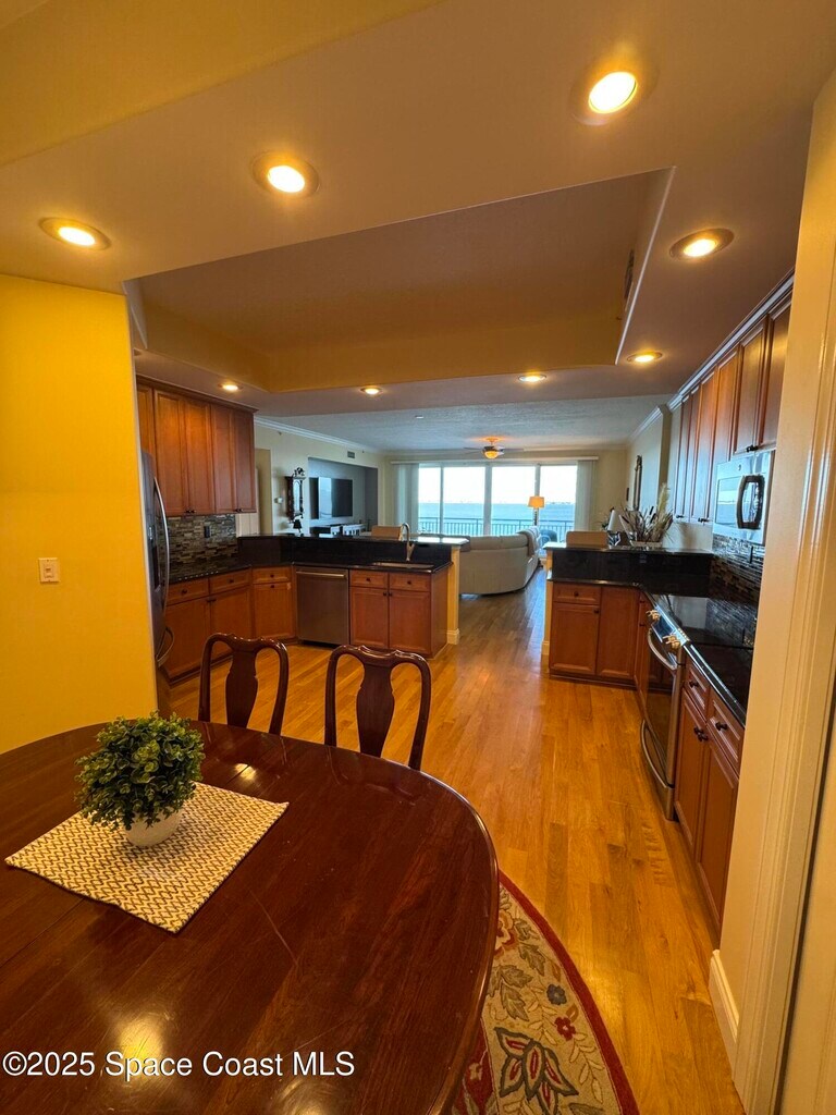 Live on the Indian River in this fully furnished 5th-floor,3BR/3BA condo with a wide riverfront balcony! Inside,enjoy wood flooring throughout with brand-new carpet in all bedrooms. The spacious primary suite features dual vanities,a walk-in shower,soaking tub,and a large walk-in closet. Every bedroom has its own ensuite bathBedroom 1: queen bed; Bedroom 2: two twins; Primary: king bed. The kitchen offers granite countertops,abundant cabinetry,and is fully stocked with everything you need. Community perks include a clubhouse you can reserve for FREE for parties and a riverside heated pool with stunning views. One assigned garage space included,plus additional unassigned parking right outside the building. Minimum lease: 3 months. Move-in readyjust bring your suitcase and enjoy the waterfront lifestyle. Available min. of 3 months!!