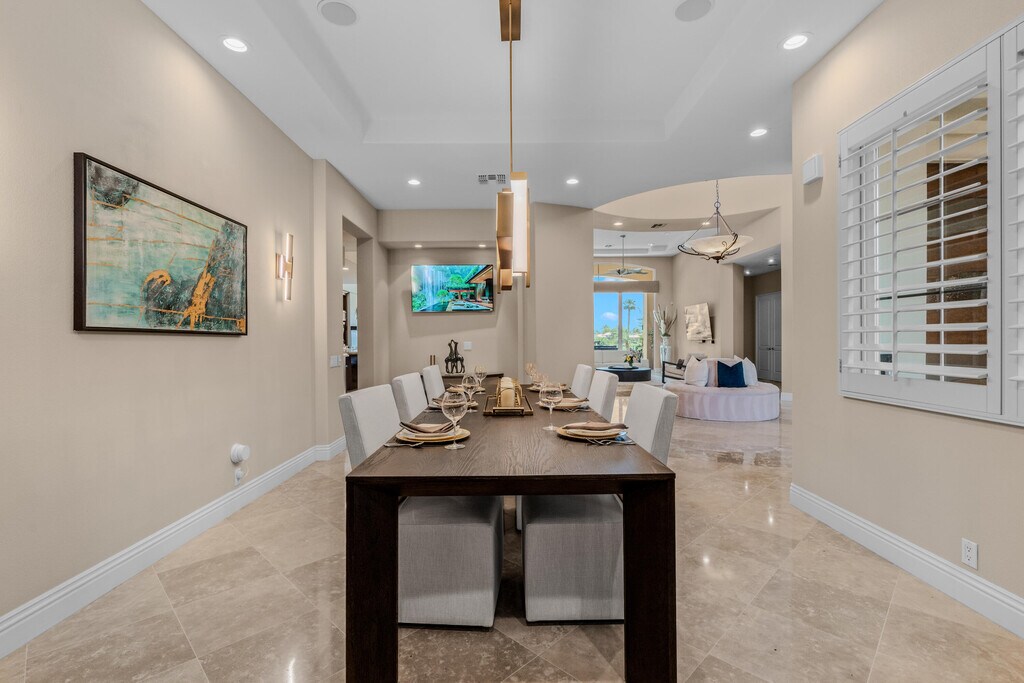 Ignite your senses with this beautifully upgraded Montana 3 model offering modern desert living at its finest. Enjoy mesmerizing lake and double fairway views from this spacious open concept home. The bright and inviting floor plan features a generous living area off the kitchen,a seperate dinning space,and three interior bedrooms - each with its own ensuite bath. A detached casita with a kitchenette provides the perfect retreat for guests with a King bed and ensuite attached for comfort and privacy. This home is fully equipped with smart home technology and Alexa integration throughout. Step outside to an entertainers paradise - the backyard features mulitple dinning and lounging areas,a cozy firepit,and a sparkling pool with a sun shelf,all set within a private fenced yard. Experience comfort,style and unforgettable views in one exceptional property! Available - March ( $30,000 ) and April ($ 25,000 )