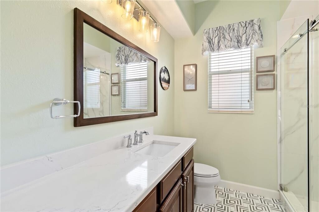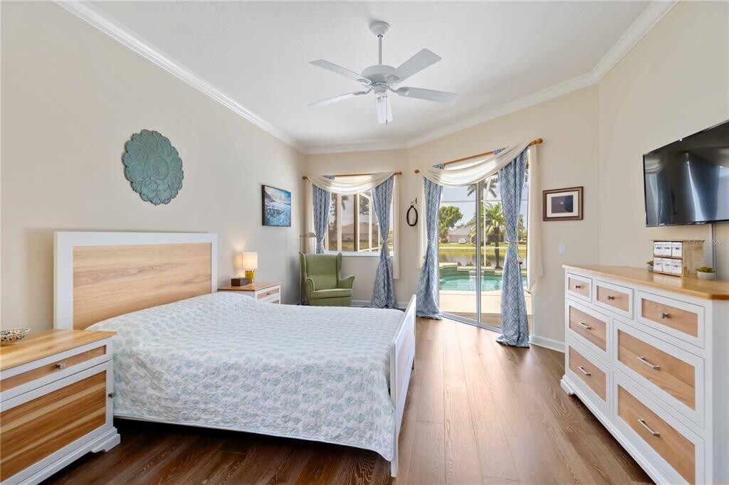 Located in West Hampton on Palmer Ranch. It is a gated community. Located minutes away from Siesta Beach which was voted #1 Beach in USA. Enjoy a beautiful lake view from the back of the home. This home was a very well maintained home. A split plan home with 4 bedrooms,3 baths,den,heated pool and a 3 car garage. A double 8' door entry provides views to the lanai,pool and beautiful lake views. French wire brushed professionally installed,glued down wide plank floors in all the living areas. The primary bedroom is on one side of the home and the other bedrooms are on the other side. The primary bathroom is updated with mosaic floor,Italian porcelain tile walls,a walk in shower,a large separate tub to make you feel like you are in a spa,twin vanities and also a dressing table. The primary bedroom has two walk in closets with custom shelving,room for hanging clothes and a luggage rack. The kitchen area has a ding area with an aquarium glass window view of the lanai,pool area and lake. The kitchen and family room area has high vaulted ceilings along with beautiful views of the lanai and lake. there is a correspondence/tech center built in desk that matches the kitchen cabinets. The kitchen cabinets have raised panels. There is also under cabinet lighting in the kitchen,counter tops are rich granite with an undermount sink. The kitchen appliances include a Bosch Convection microwave - oven combo installed in 2024 and a Kitchenaid electric cooktop. The fourth bedroom is large and could be used as a second main bedroom,bonus room /guest suite that is connected to the 3rd bath that has a door out to the pool area. The laundry room area has upper cabinets and a sink. There is a tankless RO water filter installed in 2022,the whole house benefits from a salt free water filter installed in 2022 and a new pool heat pump in 2023. The home has two A/C units. The hot water heater was replaced in 2023. The garage also offers an electric vehicle charging station. Close to shopping,restaurants,Legacy Trail and I75 for easy commuting. MLS# A4670163