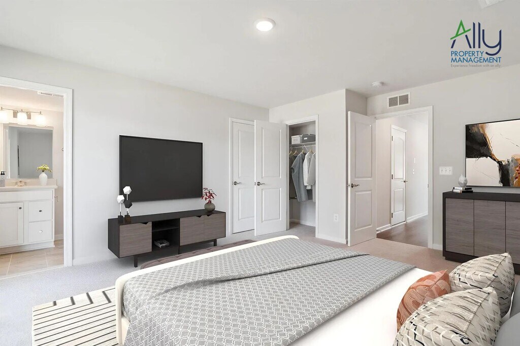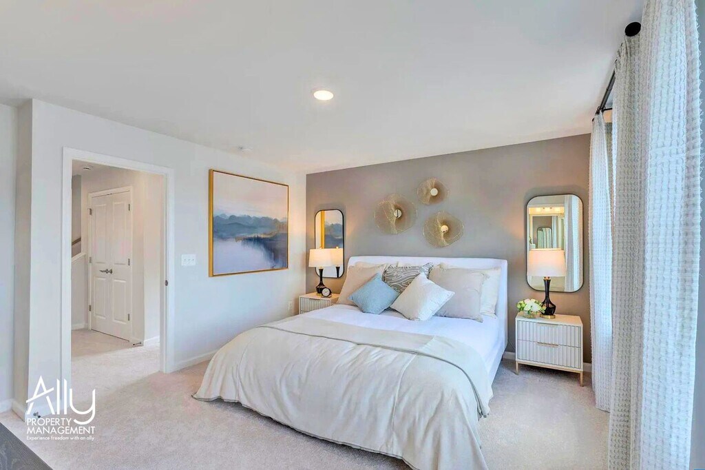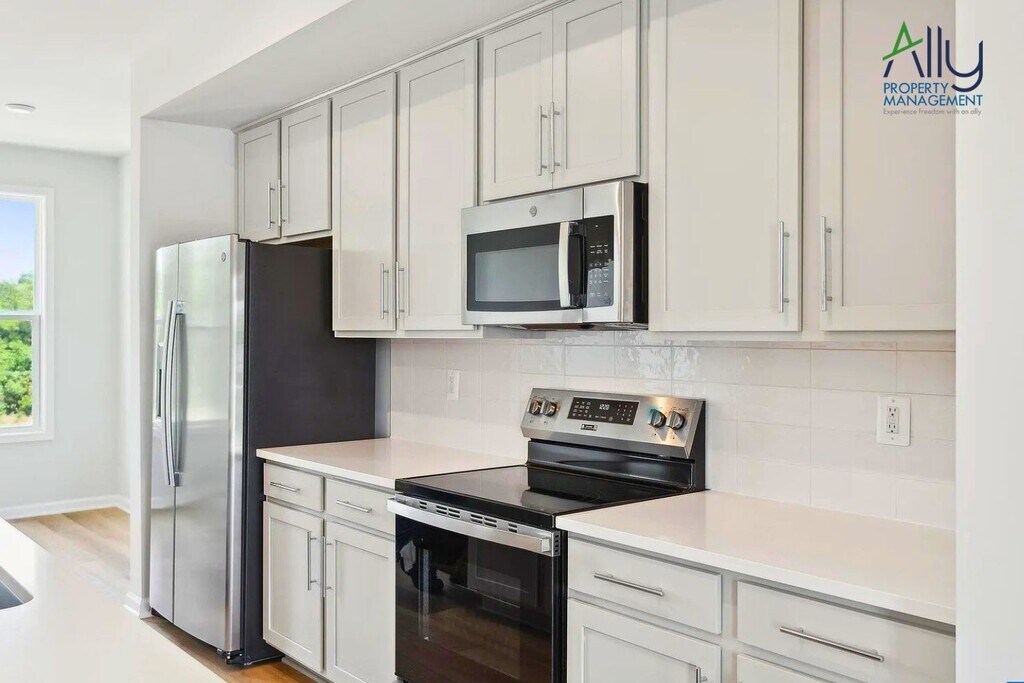 You won't want to miss this 4-Bedroom Townhome with a backyard you can fence, just a short walk to Downtown Crozet! Past a wide, welcoming Foyer, you'll find Garage space and a generous storage closet, plus an extra-private Entry Level Bedroom Suite with access to the flat backyard. The Main Level features high ceilings, large windows, upgraded LVP throughout, and a large Living Room that opens to a 10'X17' Deck, allowing you to expand your living space outdoors! This beautiful kitchen includes ample pantry storage, new GE Appliances, and a giant 10' white Quartz Island make cooking and hosting fun. You'll have plenty of space for guests! Head upstairs to 3 more bedrooms, including another large Primary Suite with an attached double-vanity bath and large walk-in closet. Take in Crozet's amazing mountain views as you walk to shopping, services, dinner, and drinks Downtown, hang by the Fire Pits and Tot Lots, or shoot hoops and catch up with neighbors. With low-maintenance finishes, durable Hardie siding, HOA (paid by the owners), covered lawn mowing, snow removal, and trash. Credit scores in the 600s. $30 Resident benefits package. Renter's insurance required. $50 application fee. Pets are possibly considered.